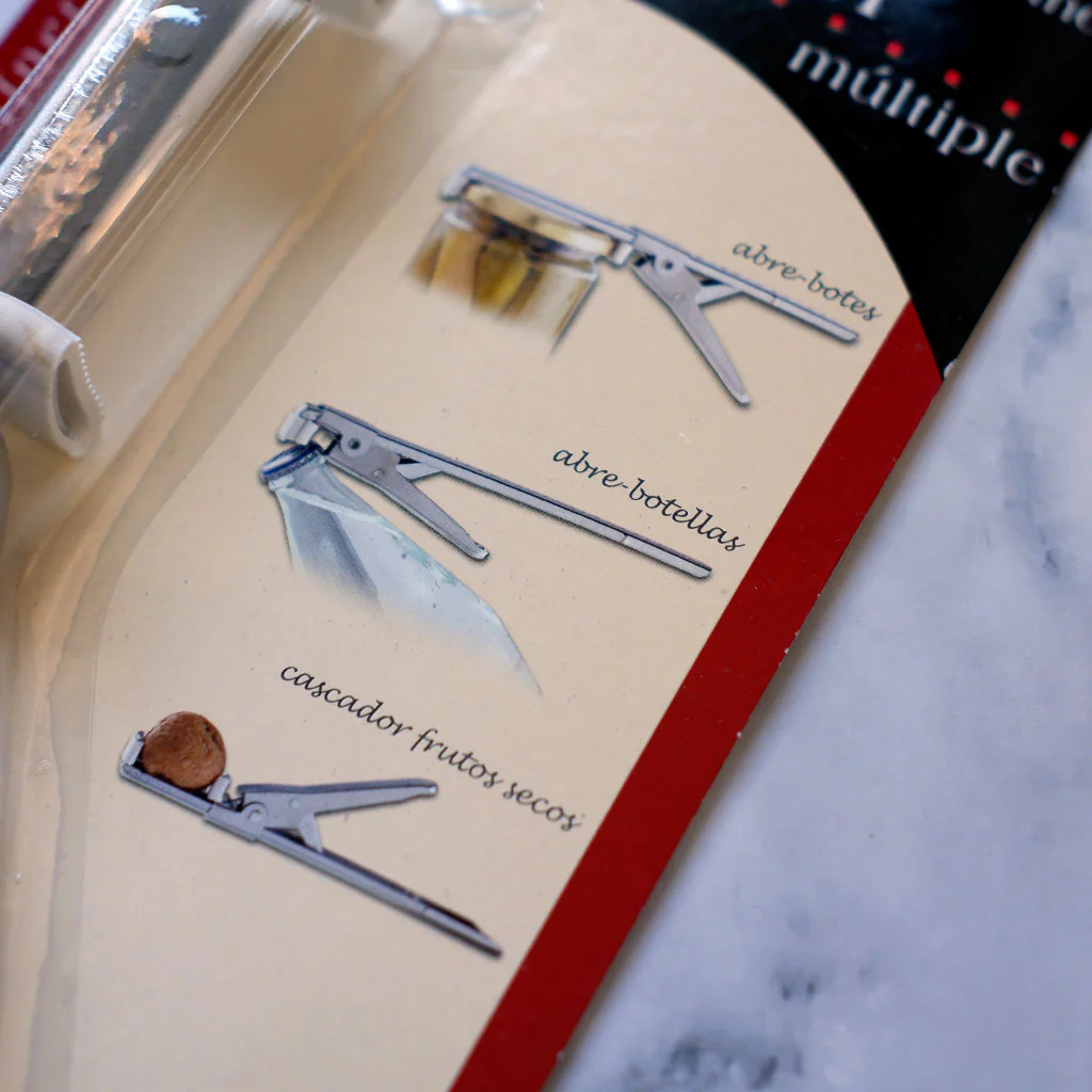 Este abridor tres en uno te facilitará enormemente la tarea de abrir los botes o de quitar la chapa de los botellines y refrescos, y será una ayuda excepcional para partir la cáscara de las nueces o de las almendras de la forma más sencilla y sin apenas esfuerzo.