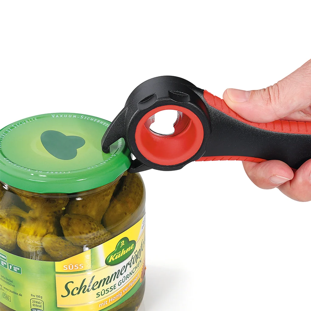El Abrebotes y latas BUTLER 5 en 1 de Küchenprofi es un utensilio de lo más práctico y multifuncional. Con este abridor universal de diseño compacto podrás abrir fácilmente y sin esfuerzo: