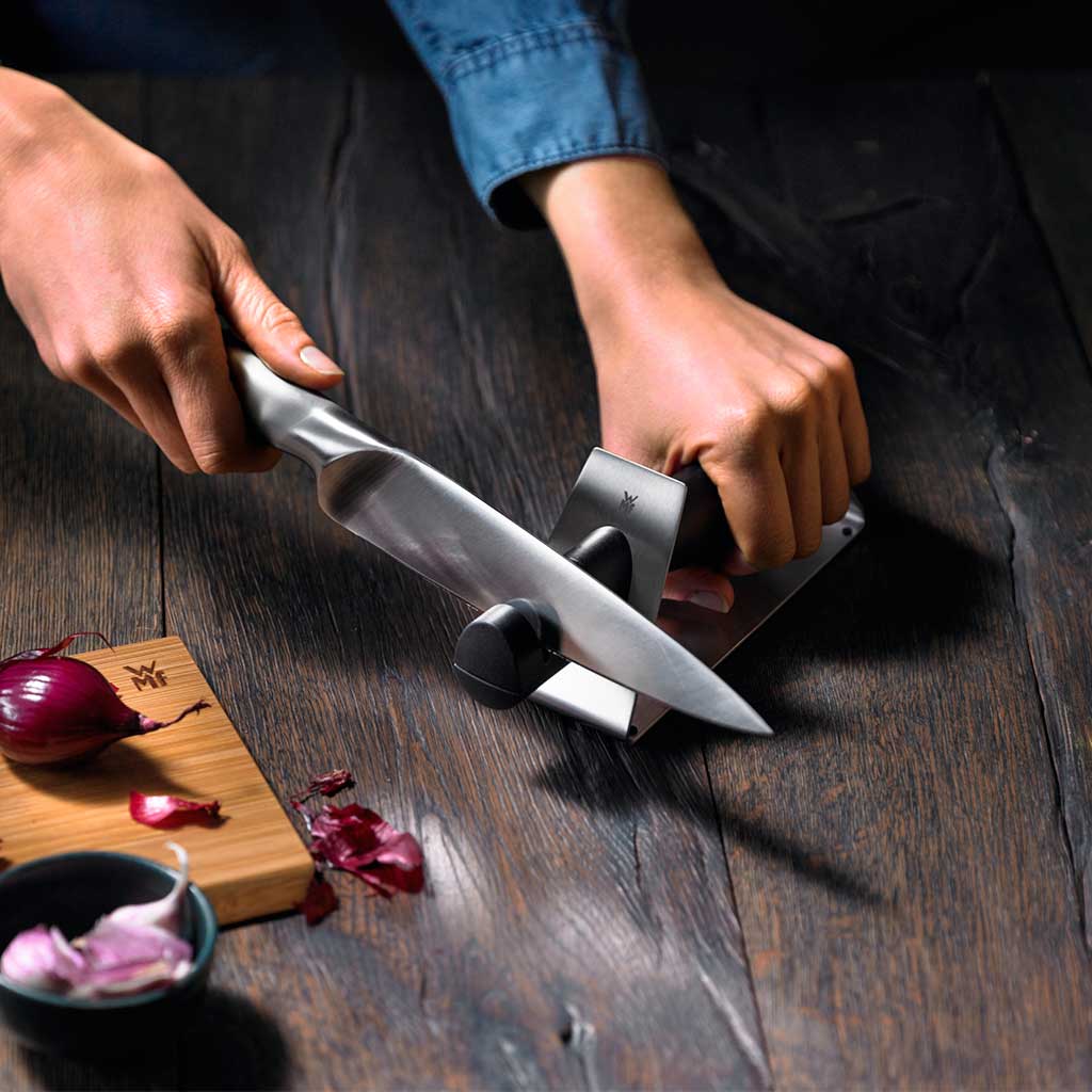 Ya seas experto o totalmente amateur en el arte del afilado, el afilador con discos cerámicos de WMF es un utensilio imprescindible para que puedas tener tus cuchillos siempre afilados.