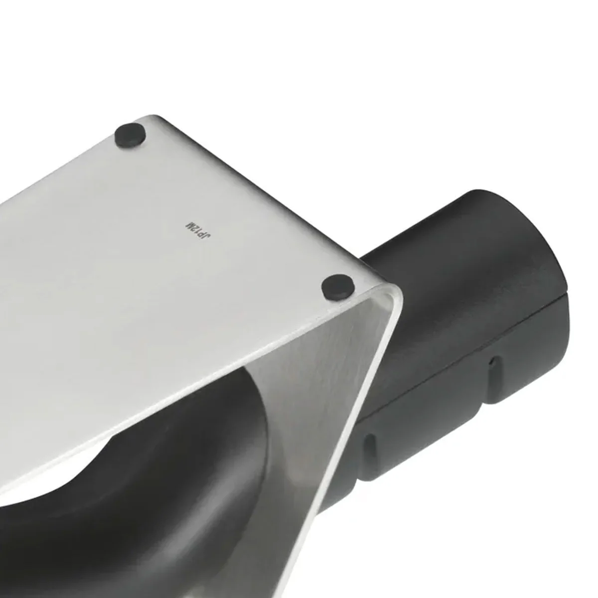 Su diseño ergonómico permite que su uso sea sencillo, seguro y práctico. Cuenta con una amplia base de apoyo de acero inoxidable Cromargan®18/10 y un mango a modo de empuñadura en la que se encuentran las dos ranuras de afilado: