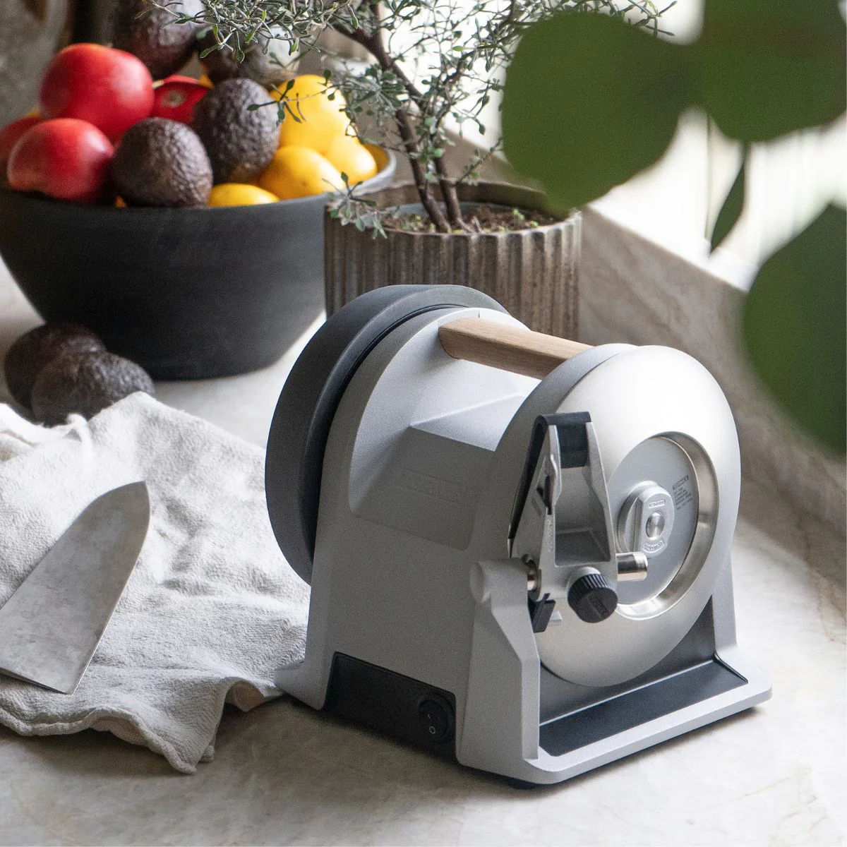 Llega a España, en exclusiva en Claudia&Julia, el Afilador de cuchillos Tormek T-1, la máquina eléctrica para afilar tus cuchillos de cocina en casa, con un afilado profesional.