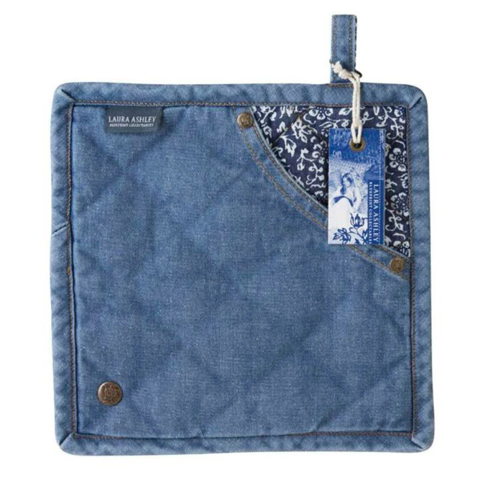 Con el Agarrador textil Sweet Allysum de Laura Ashley podrás manipular tus sartenes, cazuelas, bandejas o platos calientes protegiendo tus manos, de forma segura y con mucho estilo. Este bonito agarrador cuadrado está confeccionado en tejido vaquero acolchado, 100% algodón. Cuenta con una práctica abertura a modo de bolsillo con el estampado Sweet Allysum. Los remaches y la beta para colgarlo completan los detalles de este precioso y útil agarrador.