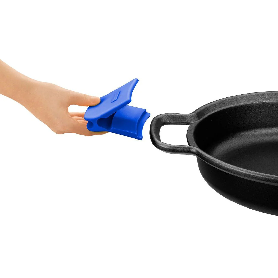 Las Asas de silicona Azul Solid+ Monix son el complemento a las bandejas y cacerolas Solid+. Con ellas, podrás manipular las piezas cuando están al fuego o podrás llevarlas a la mesa sin quemarte.