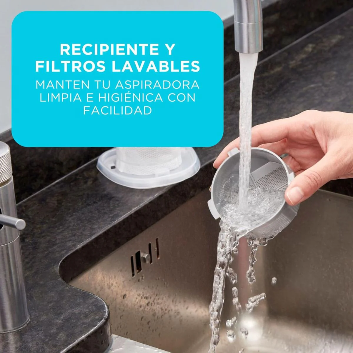 • Depósito fácil de vaciar y lavar