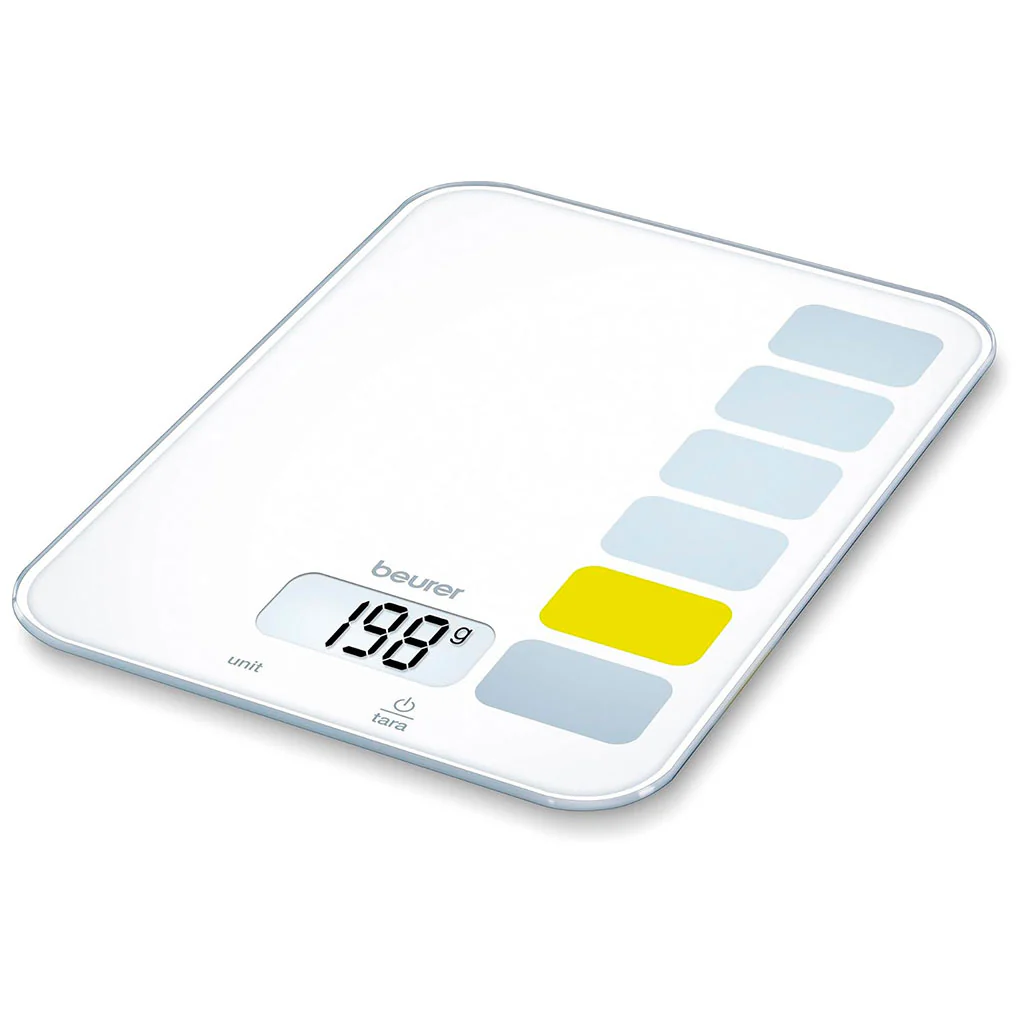 La Balanza de cocina digital 5 kg de Beurer es una báscula táctil con un diseño moderno, perfecta para tu cocina. Fabricada en vidrio ultra plano, es muy fina y apenas ocupa espacio. Podrás pesar tus ingredientes con gran precisión, con un máximo de 5 kg. Dispone de una gran pantalla LCD de fácil lectura, con función de tara. Tan discreta como funcional, ¡es una maravilla!
