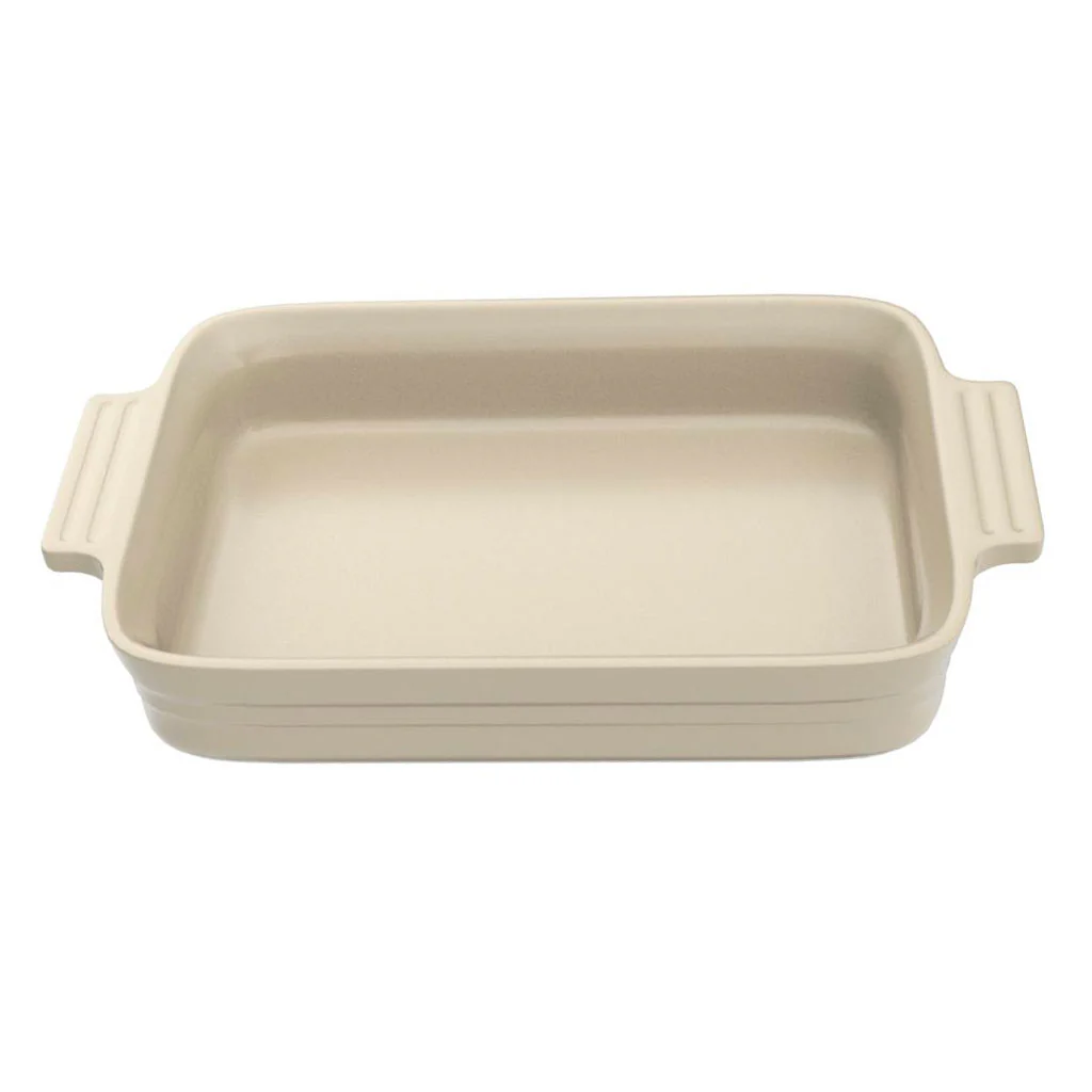 La Bandeja rectangular Classic Le Creuset es una bandeja de cerámica perfecta. Gracias a su diseño y a la maravillosa cerámica de gres de Le Creuset, tendrás una fuente estupenda en la que podrás cocinar tus recetas. El resultado será delicioso y la presentación en la mesa de lo más encantadora, ya que además de mantener muy bien la temperatura, tiene un diseño precioso. Además, viene ahora en el precioso, cálido y atemporal color almendra, un color crema que nunca pasa de moda y que queda bien en cualquier cocina, cualquier mesa y cualquier receta.