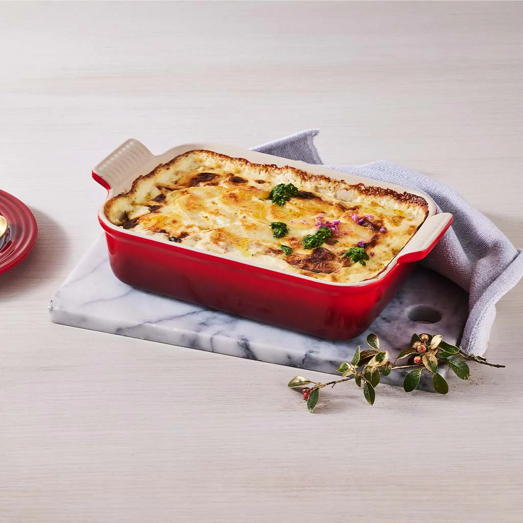 ¡Uno de los moldes más icónicos de Le Creuset! La Bandeja cerámica Heritage Le Creuset es una fuente de cerámica de gres, ideal para todo tipo de elaboraciones. Esta bandeja te permite tanto cocinar en el horno pescados y carnes, como gratinar lasañas, canelones o vegetales… ¡Y realizar deliciosos bizcochos y otras recetas dulces! ¡Seguro que ya sabes de qué va a ser el primer bizcocho que harás en ella! Además, tiene una excelente presentación en la mesa.