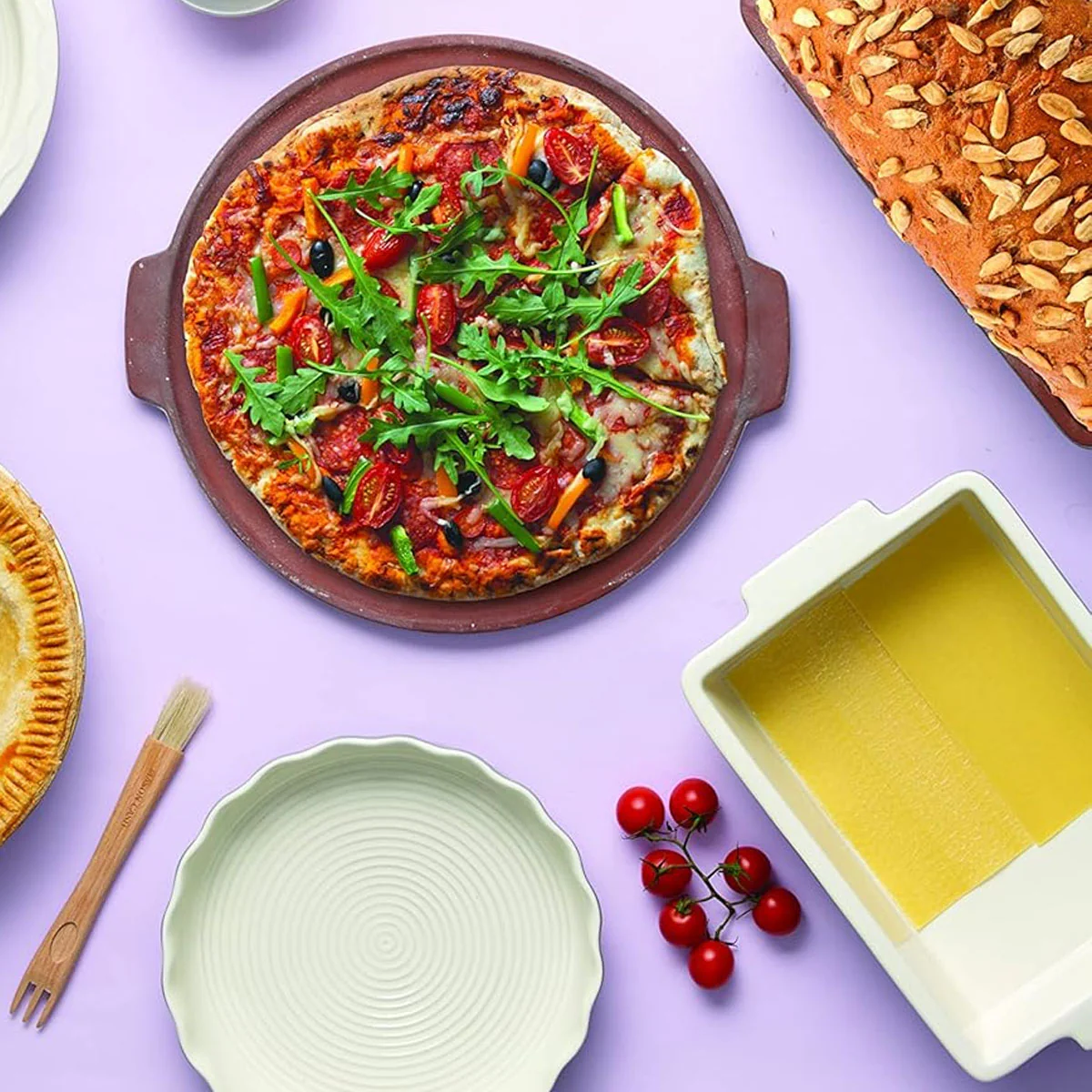 Fabricada en cerámica esmaltada, cuenta con una base con zonas elevadas que actúan como rejillas de ventilación para una mejor circulación del calor al colocarlo en una bandeja de horno. Además de bonita es práctica y muy funcional: ¡lo tiene todo!
