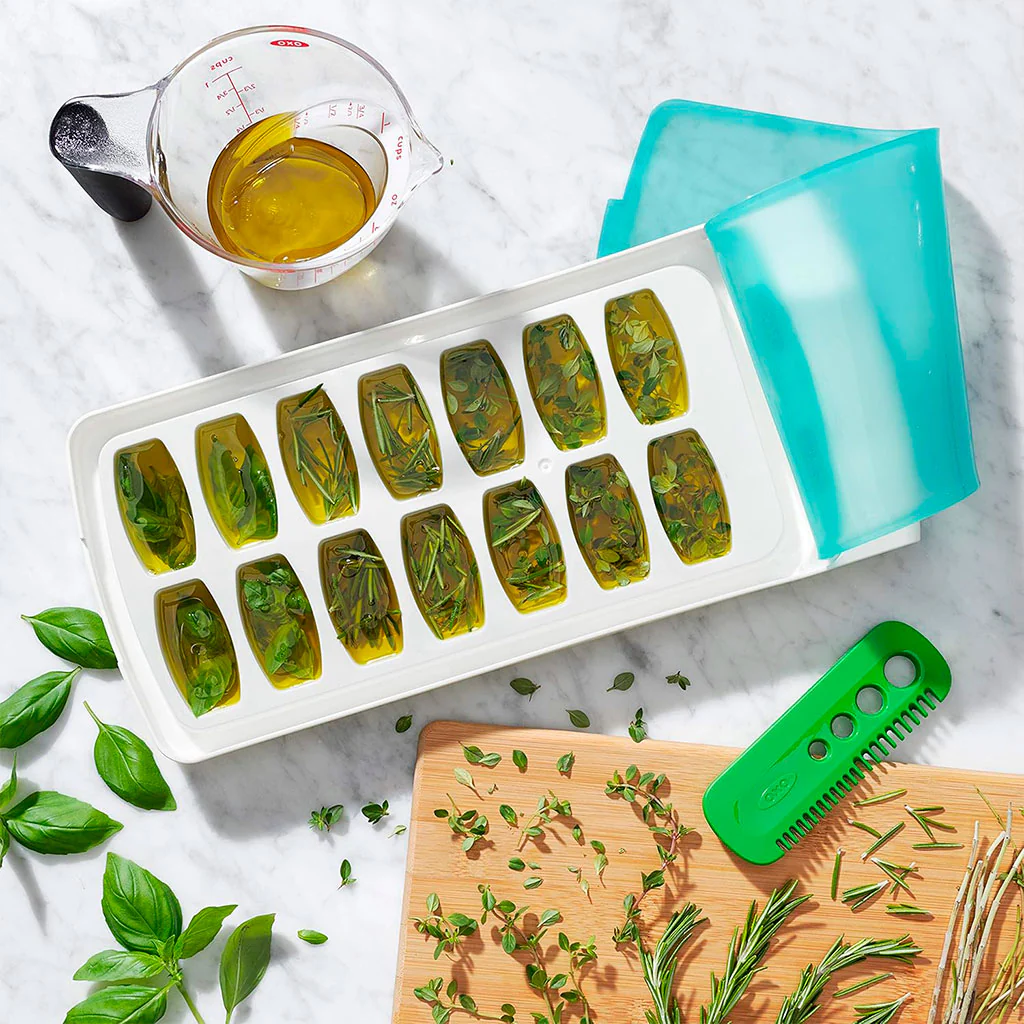 Con la Bandeja de hielo con tapa de silicona OXO podrás hacer cubitos de hielo perfectos sin riesgo de fugas de agua. Con capacidad para hasta 14 cubitos, está fabricada en plástico y silicona de alta calidad, libre de BPA que le proporcionan una larga durabilidad.