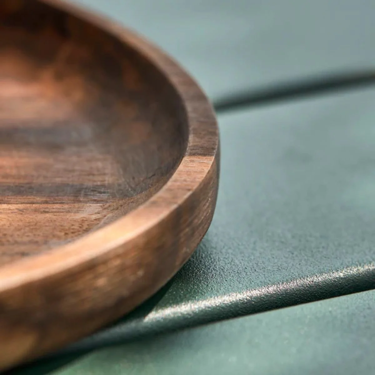 - Bandeja redonda de madera de acacia.