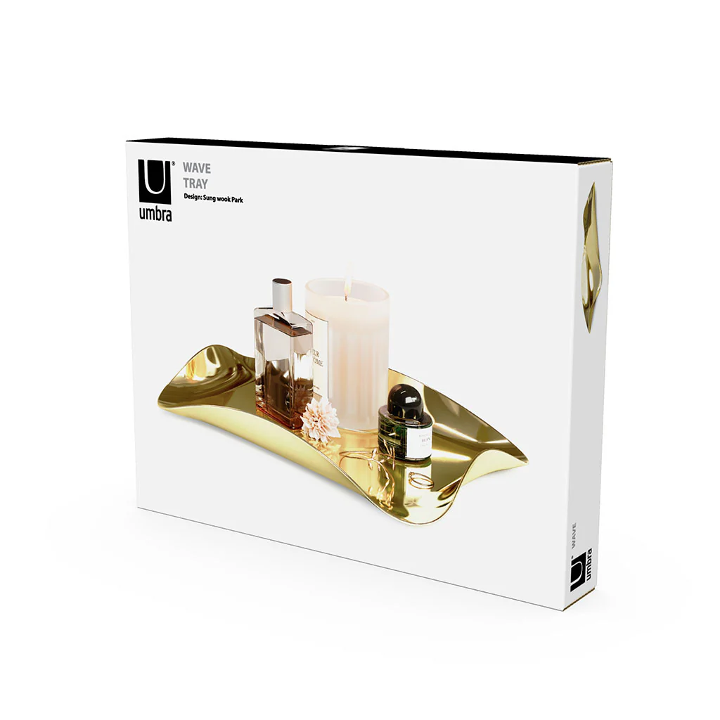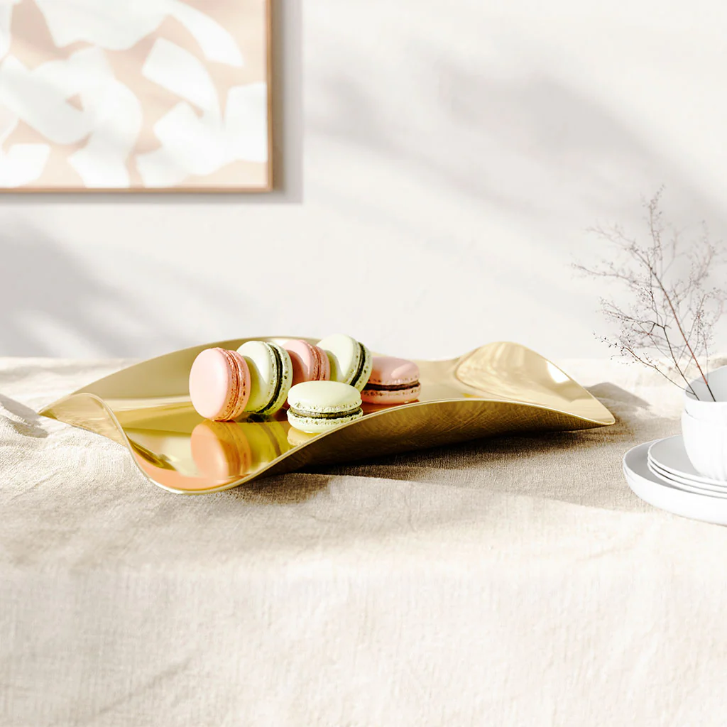 La Bandeja dorada de Umbra es una preciosa y versátil bandeja de acero pulido que lucirá de lo más elegante en tu mesa. Es ideal para presentar unos bocaditos, bombones, las pastas del té, o los siempre deliciosos macarons. Sus bordes curvados actúan como asas, facilitando el agarre. Y gracias a su base acolchada podrás dejarla donde quieras sin que se raye nada.