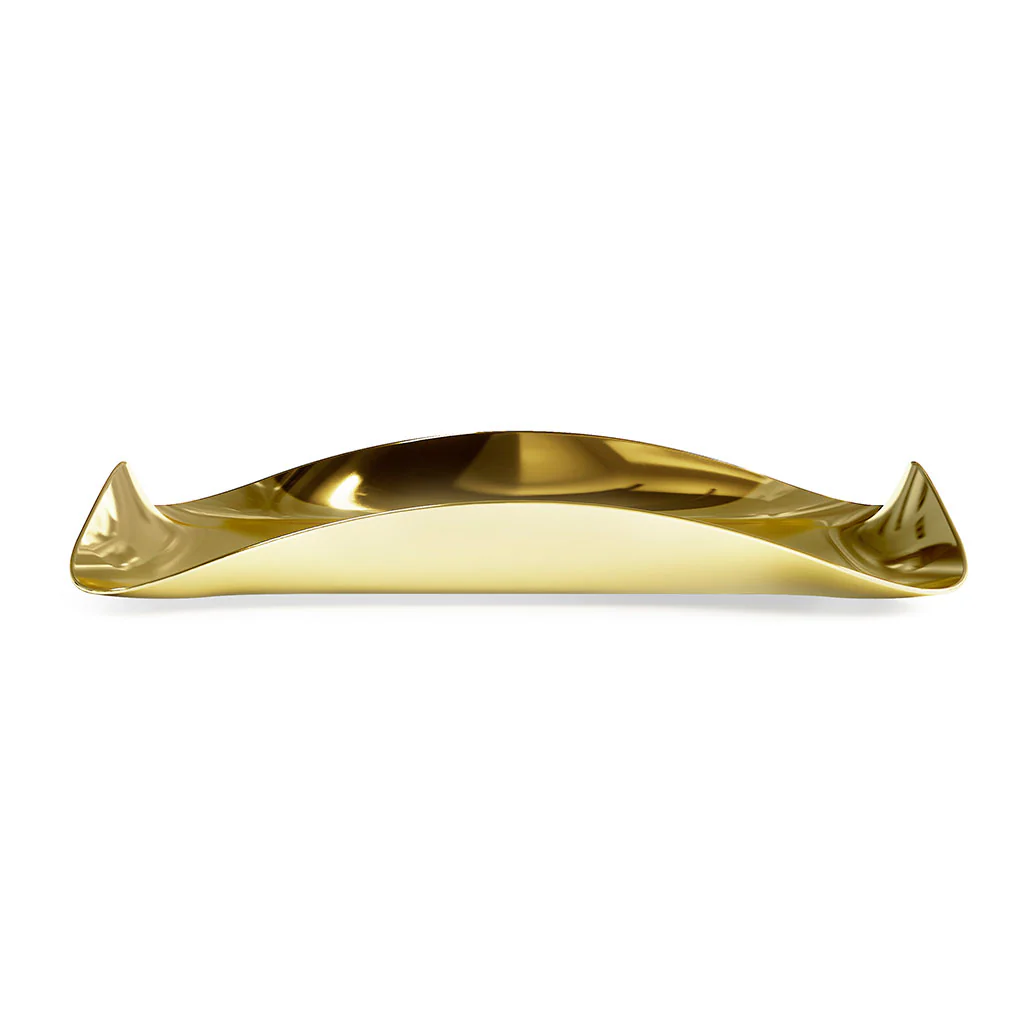- Bandeja dorada de acero pulido.