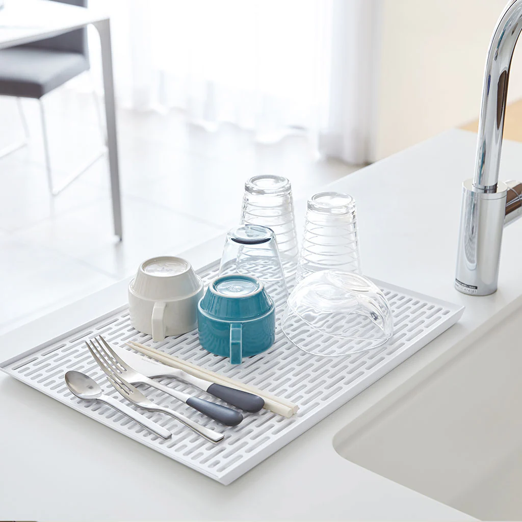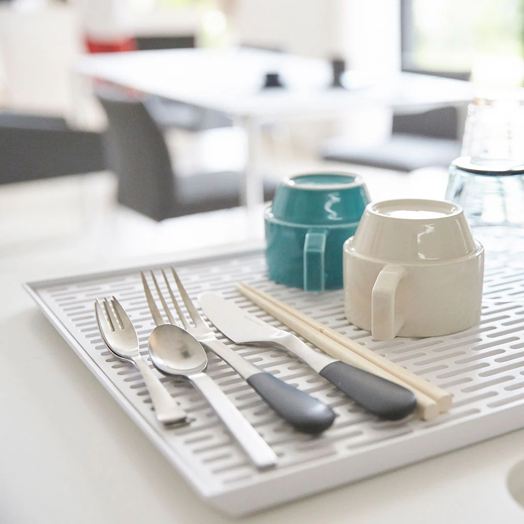 Con la Bandeja escurridora Yamazaki, ¡verás que mantener tus platos y utensilios secos y tu cocina limpia y ordenada nunca había sido tan fácil!