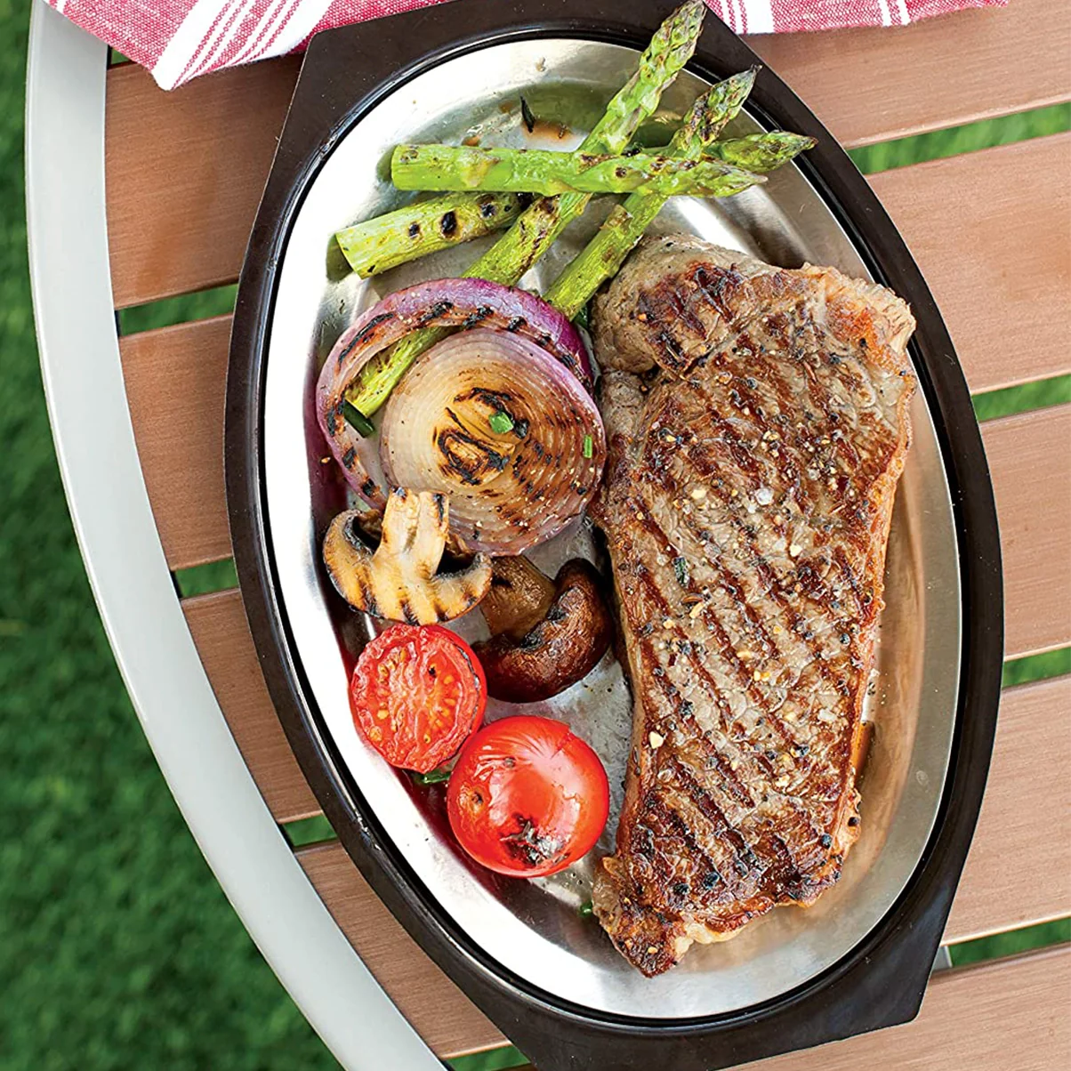 Esta bandeja Nordic Ware, conocida allí como Bandeja Steak Server, es un clásico de la marca desde sus inicios, desde los años 40, muestra de la efectividad y practicidad de la misma. Está fabricada en Estados Unidos y está compuesta por:
