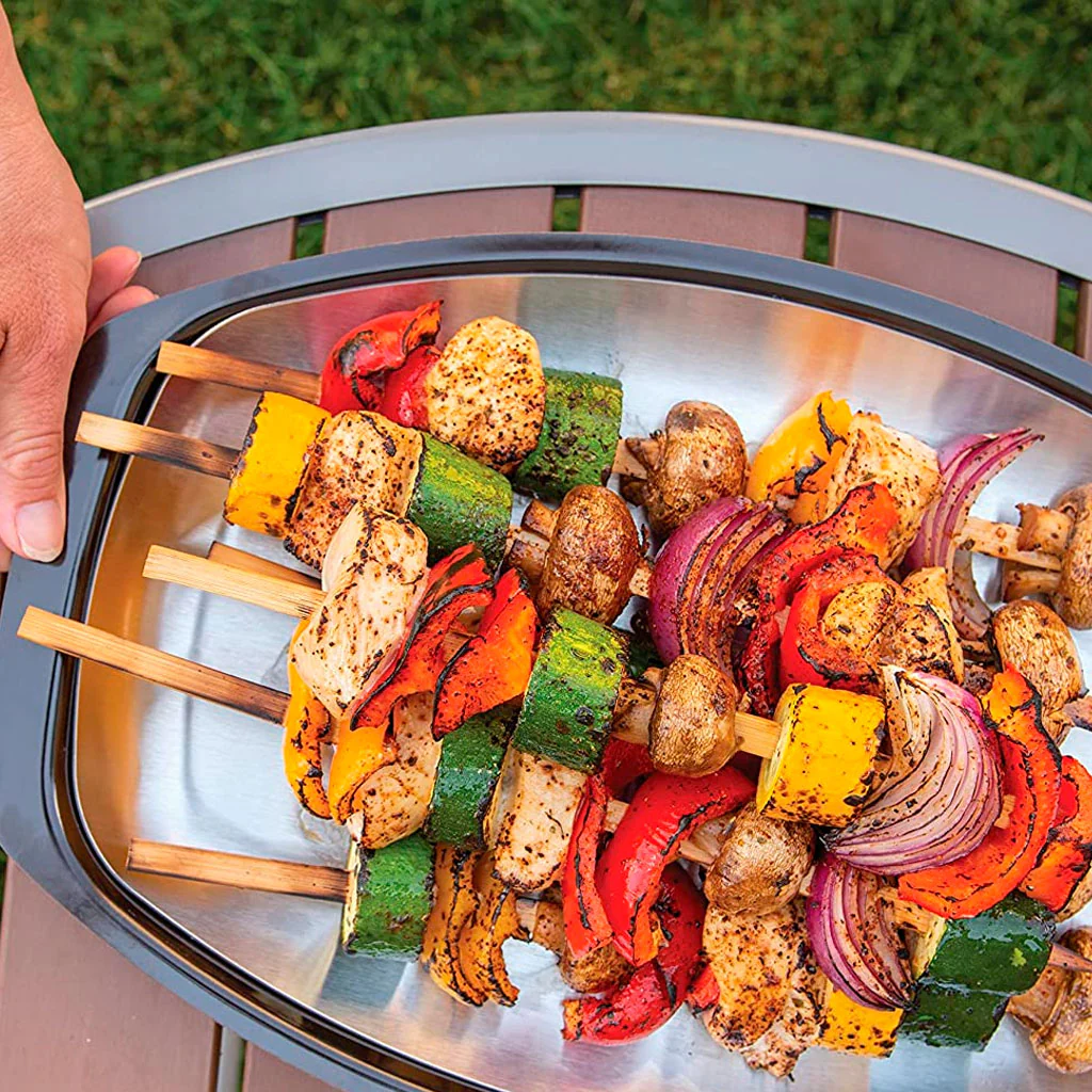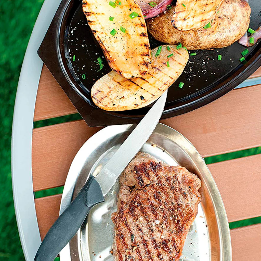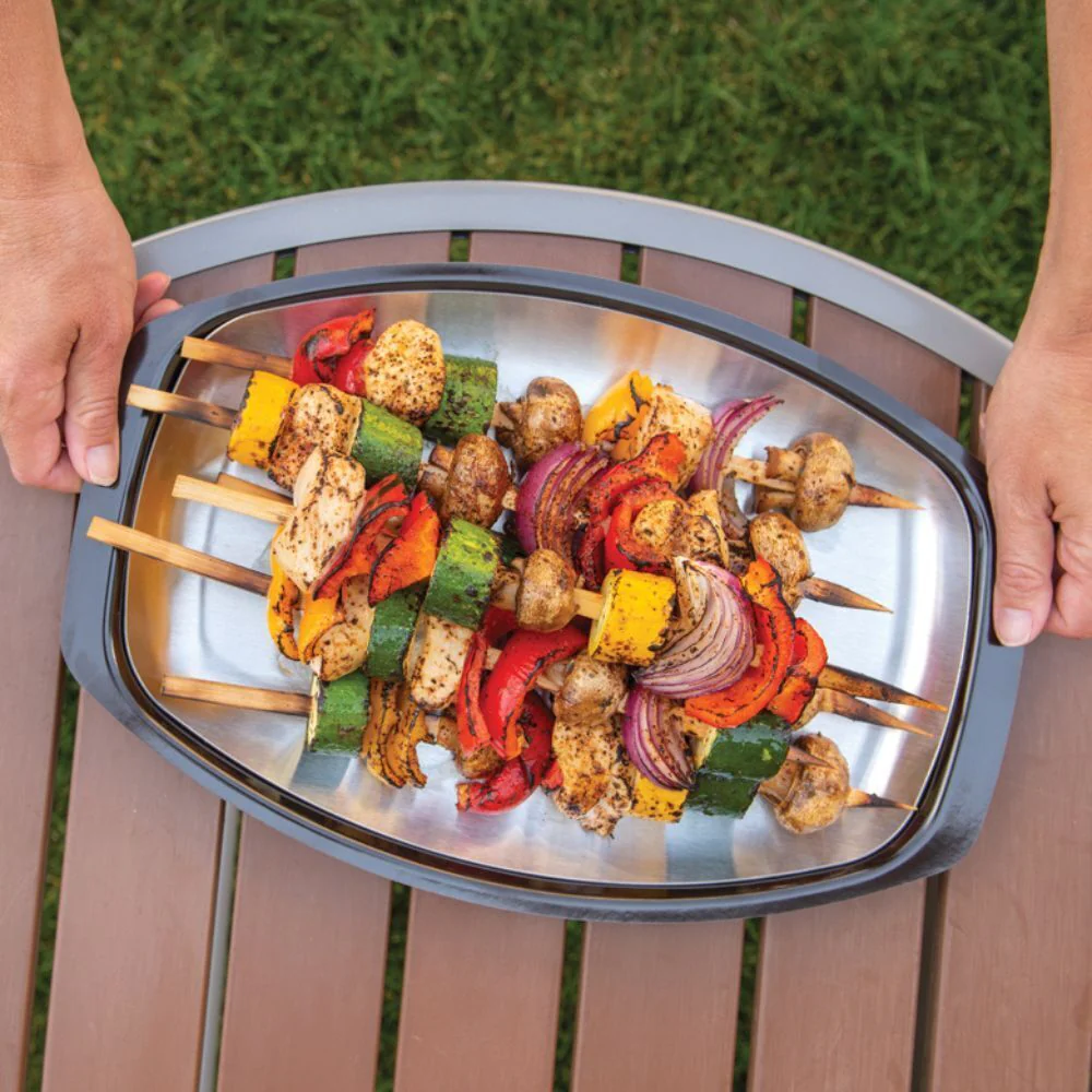 • Una bandeja de acero inoxidable, pensada y apta para cocinar en la barbacoa y en el horno. Es ideal para preparar todo tipo de carnes y vegetales a la parrilla, tostar pan o asar unos pimientos.