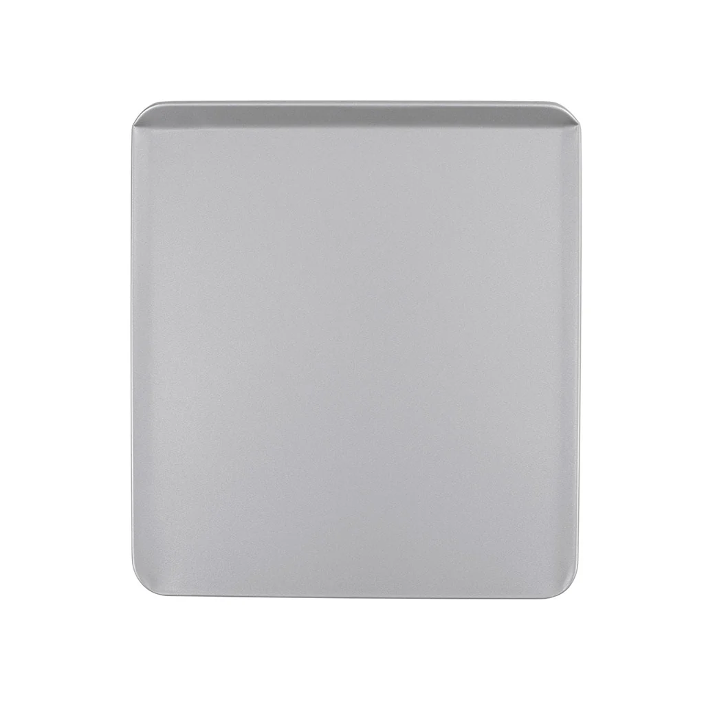 La superficie de la bandeja es completamente lisa, con los laterales y el borde frontal ligeramente elevados, a modo de pestaña, para facilitarte su manejo al meterla y sacarla del horno, incluso con guantes de cocina. Dado que su antiadherente funciona tan bien y no se pega nada, esta ligera elevación de los lados sirve también para contener lo que quieras hornear, evitando que pueda caer de la bandeja al moverla.
