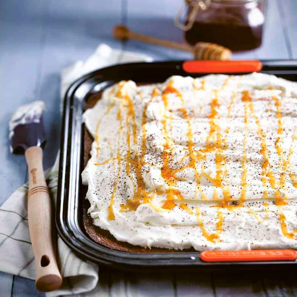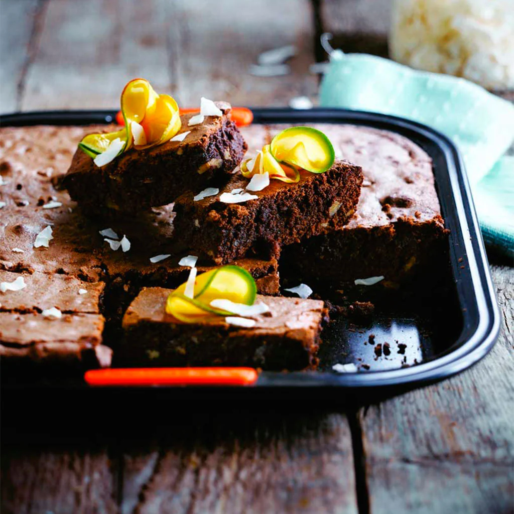 Con ella tanto podrás hornear bizcochos, brownies, brioches o pan, como gratinar una fuente de macarrones o una rica lasaña, o asar carne con patatas o las verduras que prefieras. Una bandeja todoterreno que te dará muchas alegrías.