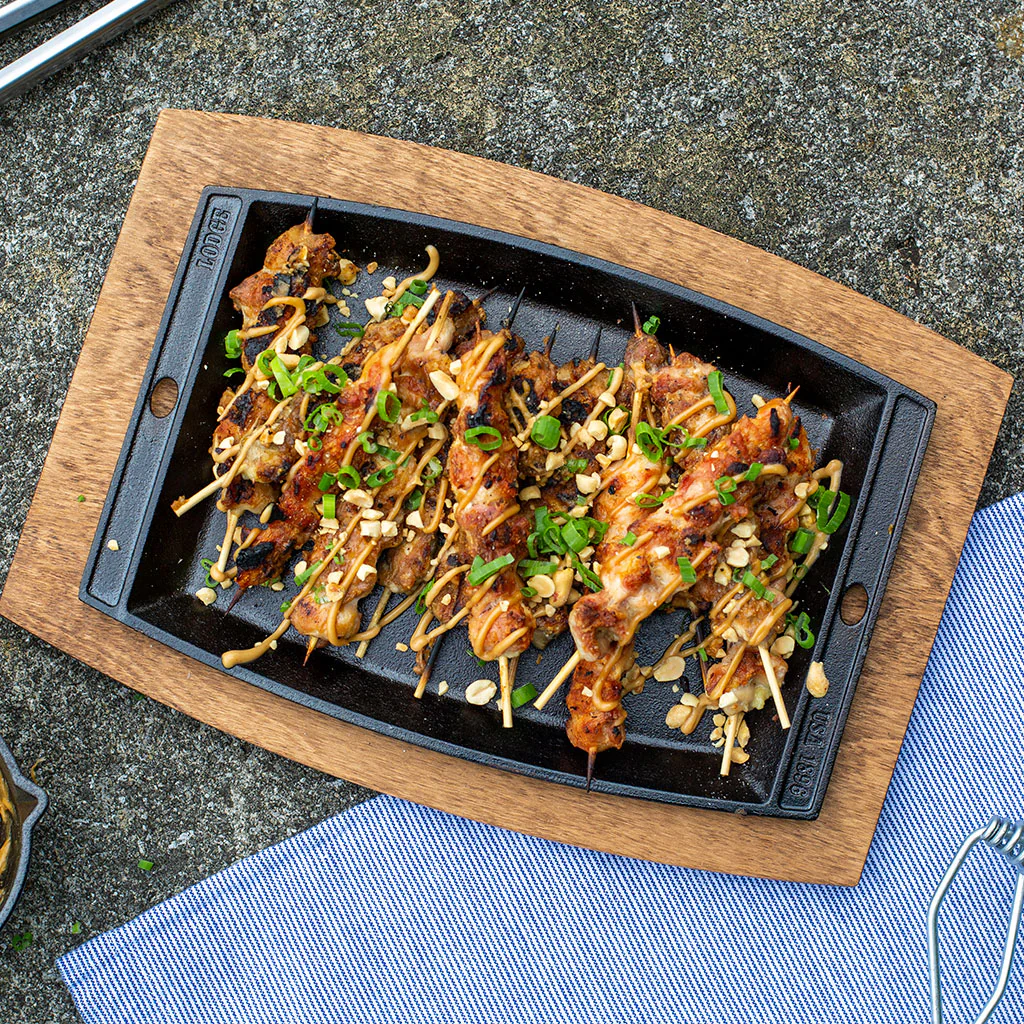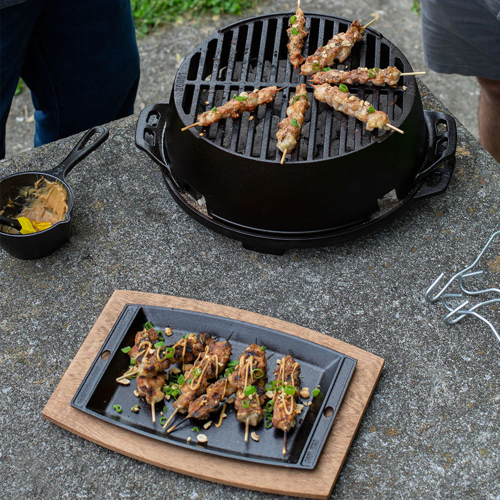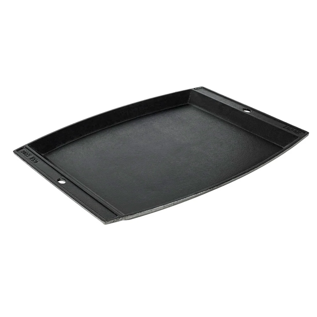 La Bandeja rectangular para horno de hierro Lodge es una bandeja grill ideal para preparar tus mejores platos tanto en el horno como en la cocina, en la barbacoa o incluso en la chimenea, un brasero o en una hoguera. Una superficie ideal para asar carnes, verduras o pescados, o preparar cualquier receta en el fuego o el horno, con unos resultados excepcionales. Y del horno o la parrilla a la mesa, donde además de mantener calientes los alimentos, destacará por su robustez y su encantador aire rústico.