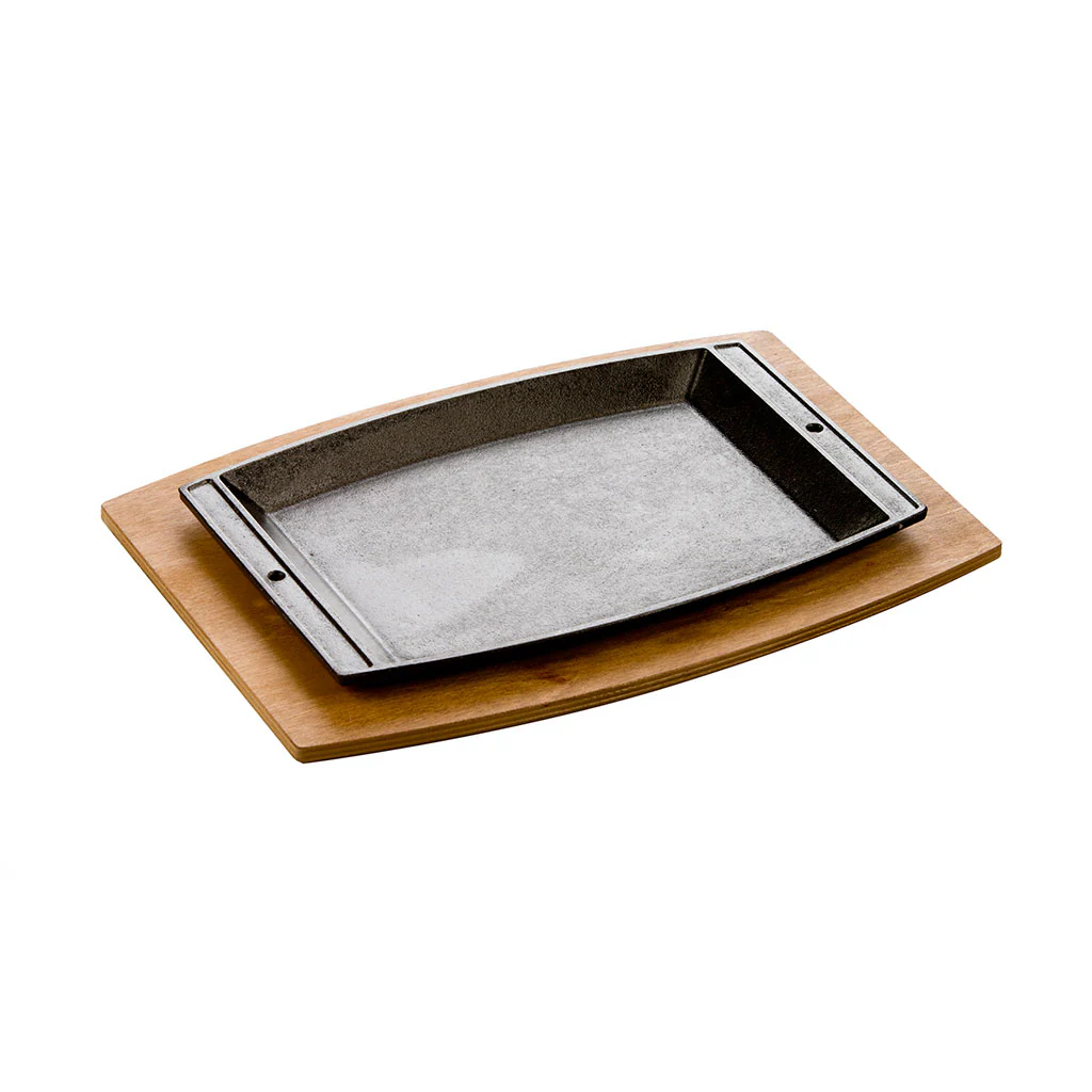 El protector de madera para la bandeja rectangular de hierro no está incluido. Si quieres completar el conjunto, puedes encontrar el protector nogal Lodge rectangular de 35 x 25 cm aquí.
