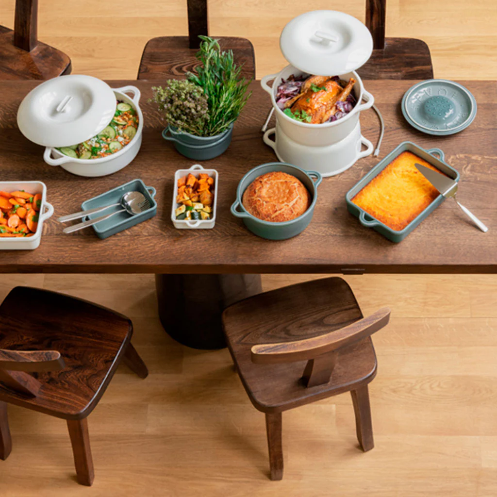 La nueva colección Bombance de Revol invita a disfrutar en la mesa, donde bandejas y cocottes dibujan un fondo alegre para las recetas más deliciosas y saludables. Diseñada por Inga Sempé, todas las piezas son de porcelana y están fabricadas en Francia. Bombance hace referencia a la forma redondeada de la cocotte y alude a la expresión gala faire bombance, o festejar alegremente.