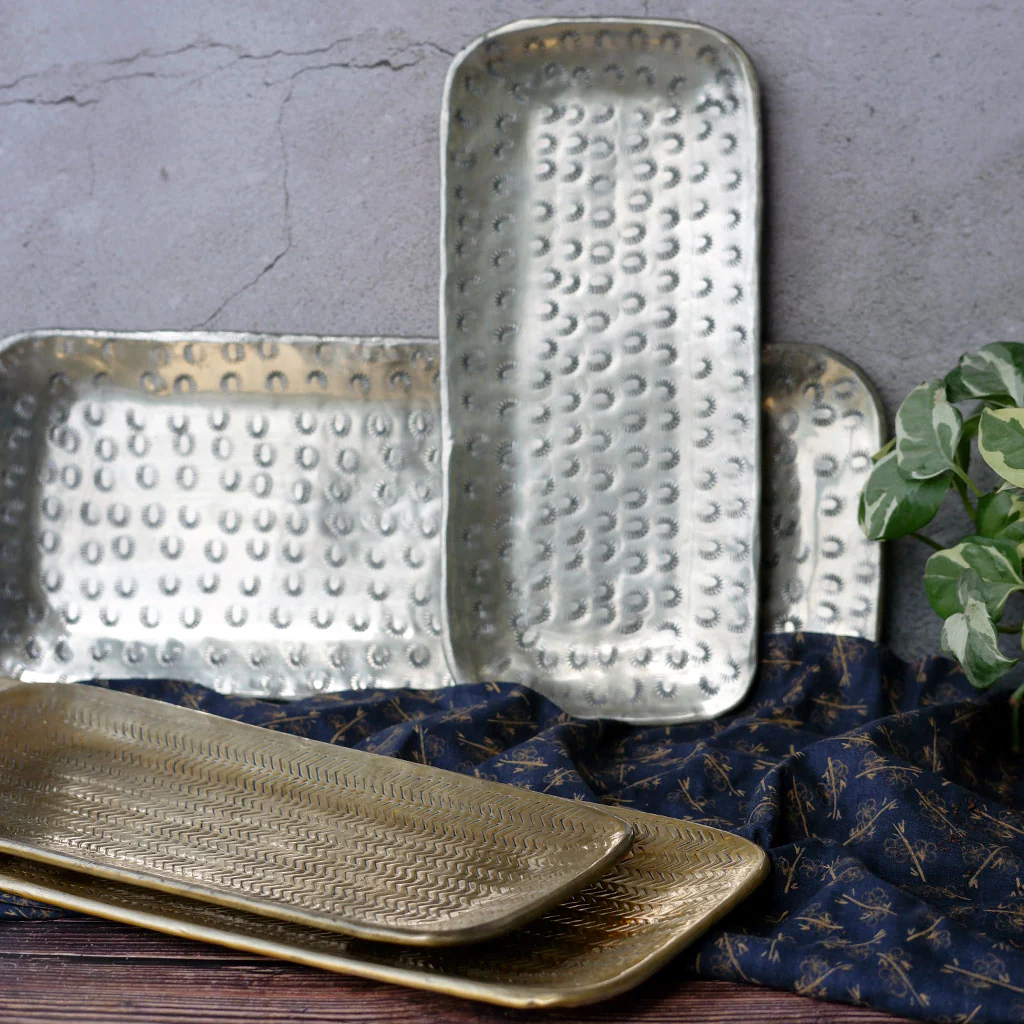 Las elegantes Bandejas Eldorado de Affari of Sweden son perfectas para lucir tanto en interior como en exterior. Estas bandejas rectangulares de aluminio son muy ligeras y están fabricadas artesanalmente. Sobre la mesa del comedor con unos bombones, para servir las tazas de café, en el mueble del salón con unas velas o en la consola del recibidor recogiendo unas flores secas variadas, ¡se verán preciosas!