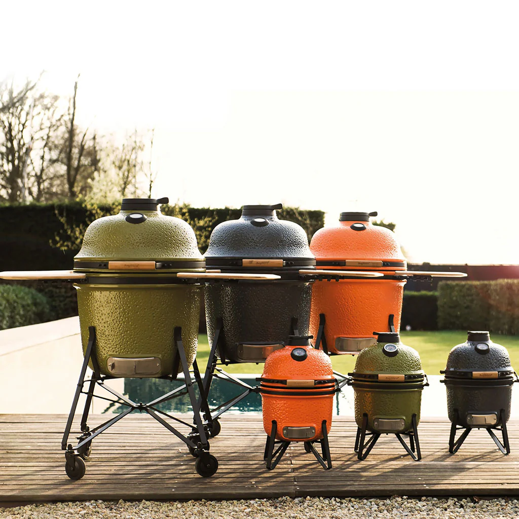 - Barbacoa-horno cerámica con patas y chasis de acero carbono.