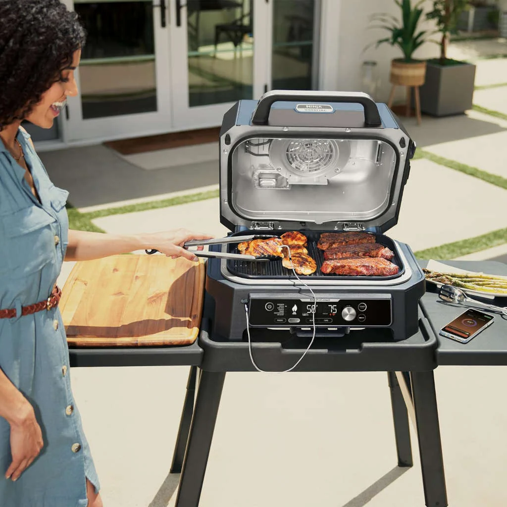 Además de su polivalencia, de su gran capacidad, de la posibilidad de controlarla a distancia desde el móvil, de las múltiples opciones que te brindan todas sus funciones, tanto para ahumar, o para cocinar con ella como un grill, como un horno de convección o como una freidora de aire, la parrilla eléctrica exterior de Ninja destaca por: