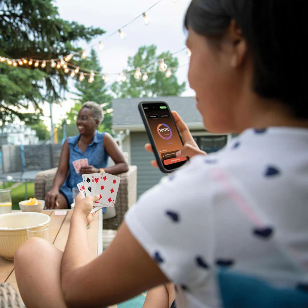 Además, te permite cocinar sin perderte ni un detalle de las reuniones con los amigos o la familia, controlando a distancia la parrilla en todo momento con el móvil o la tablet. Podrás recibir notificaciones a tiempo real, monitorizar el estado de la cocción, programar la barbacoa de forma remota y acceder a las instrucciones, a la guía rápida y a vídeos de recetas y funcionamiento.