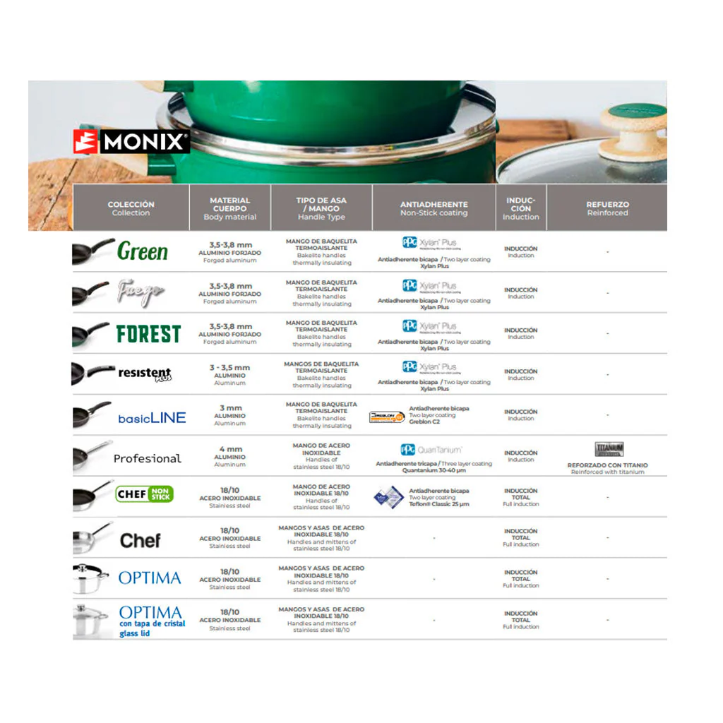 - Apta para todo tipo de cocinas, incluidas las de inducción.
