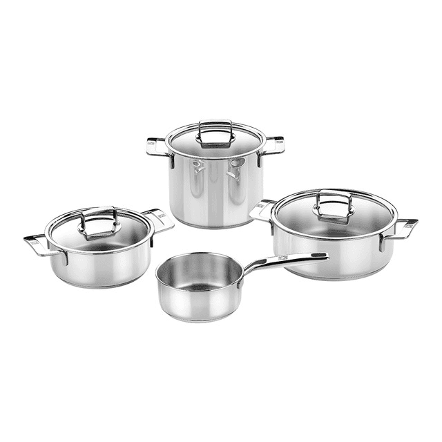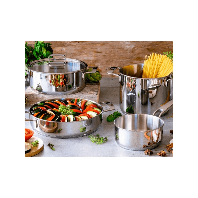 Esta batería está compuesta por 4 piezas indispensables en cualquier cocina, y todas son aptas para todas las fuentes de calor (incluida la inducción), con triple fondo difusor full induction que ofrece un excelente reparto de la temperatura para una cocción perfecta de todas tus recetas.