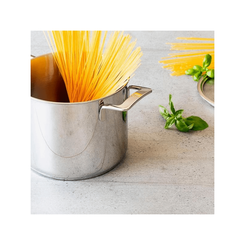 La batería de acero inoxidable Signature es una de las joyas de la corona de la colección BRA Signature. Es una colección fabricada 100% en acero inoxidable, que destaca por la belleza de su diseño -especialmente por esas asas tan elegantes, inspiradas en las piezas alemanas más reconocidas de su categoría- y la calidad de construcción de su fondo, que permite un reparto estupendo del calor.