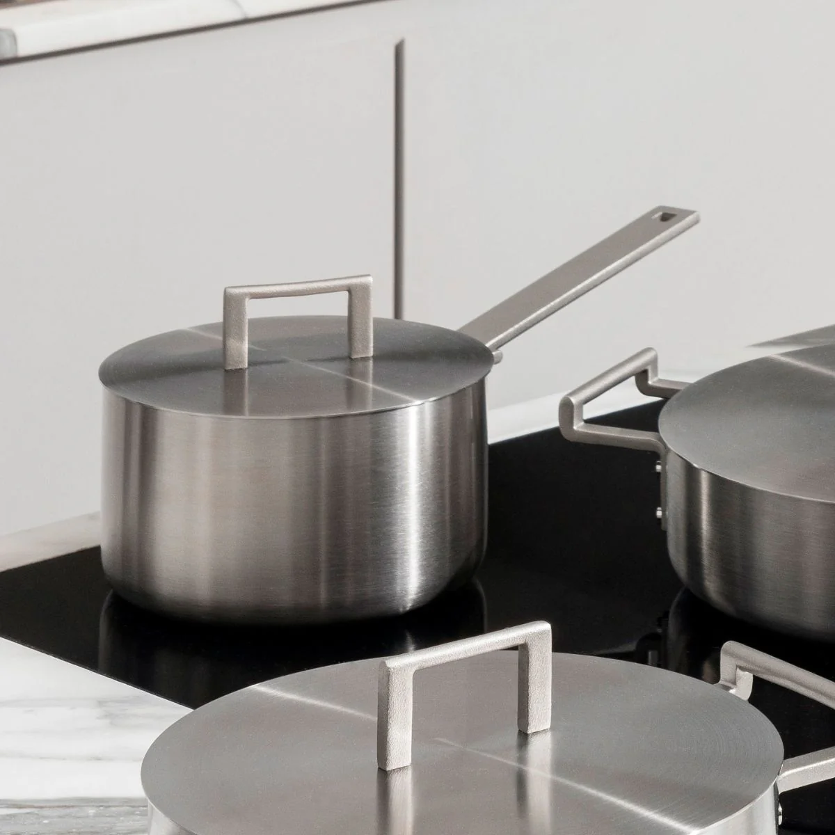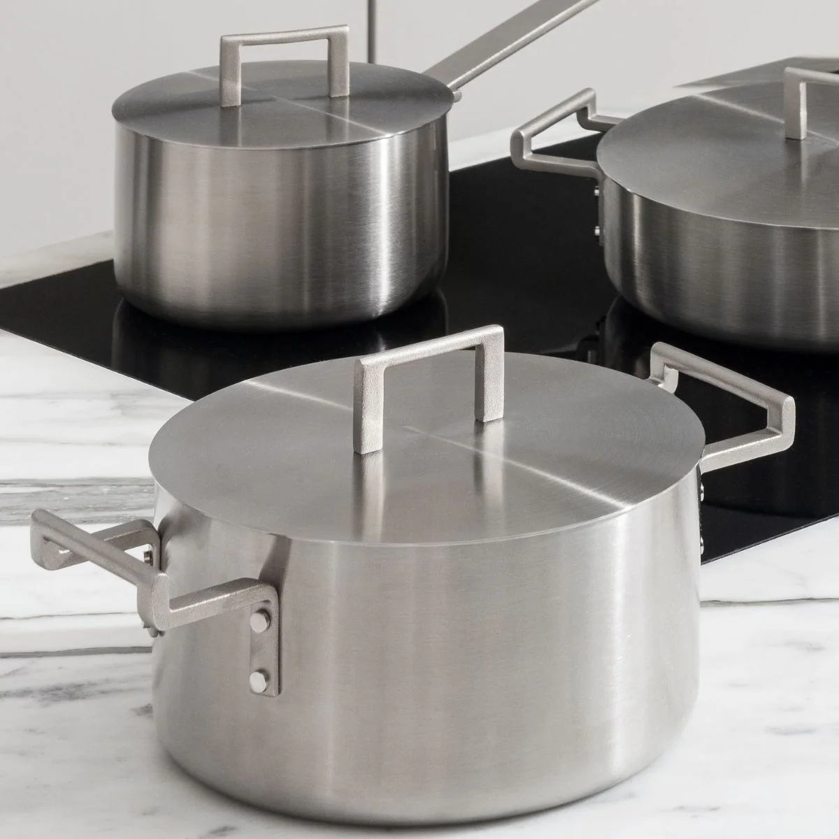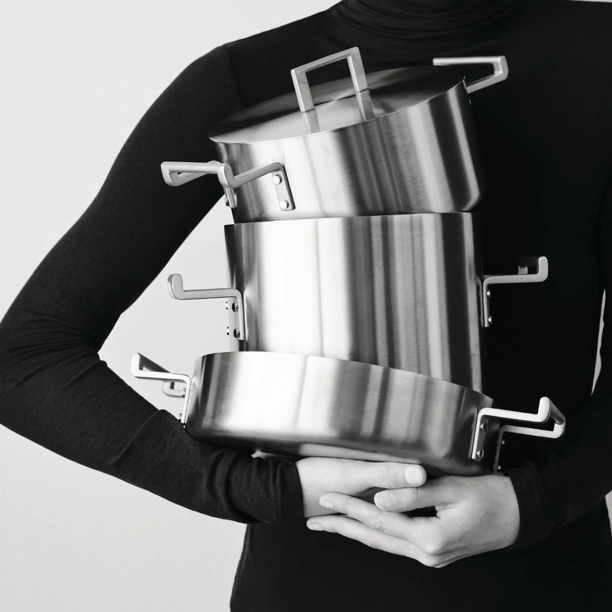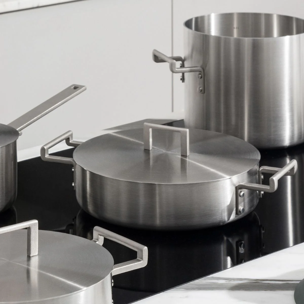 La Batería de cocina de acero inoxidable multicapa Convivio Alessi contiene 4 piezas imprescindibles para equipar tu cocina:
