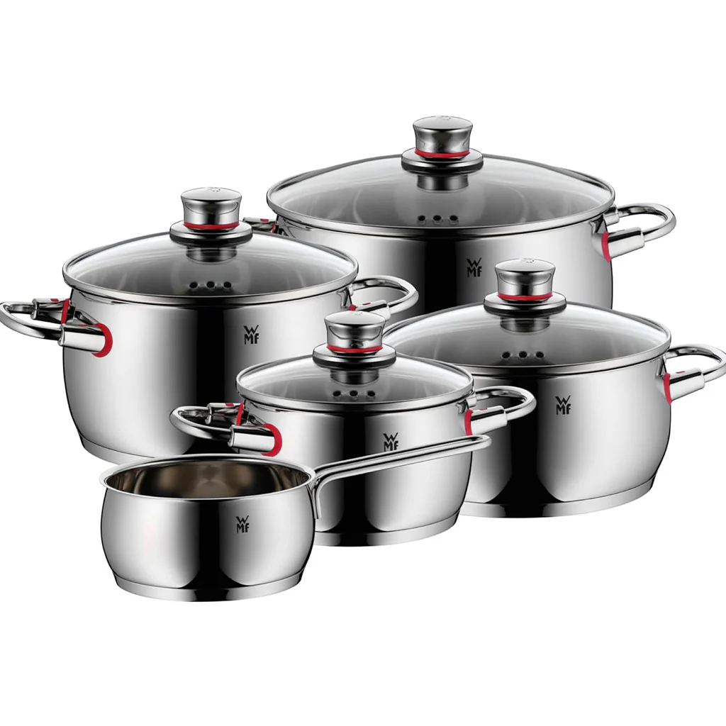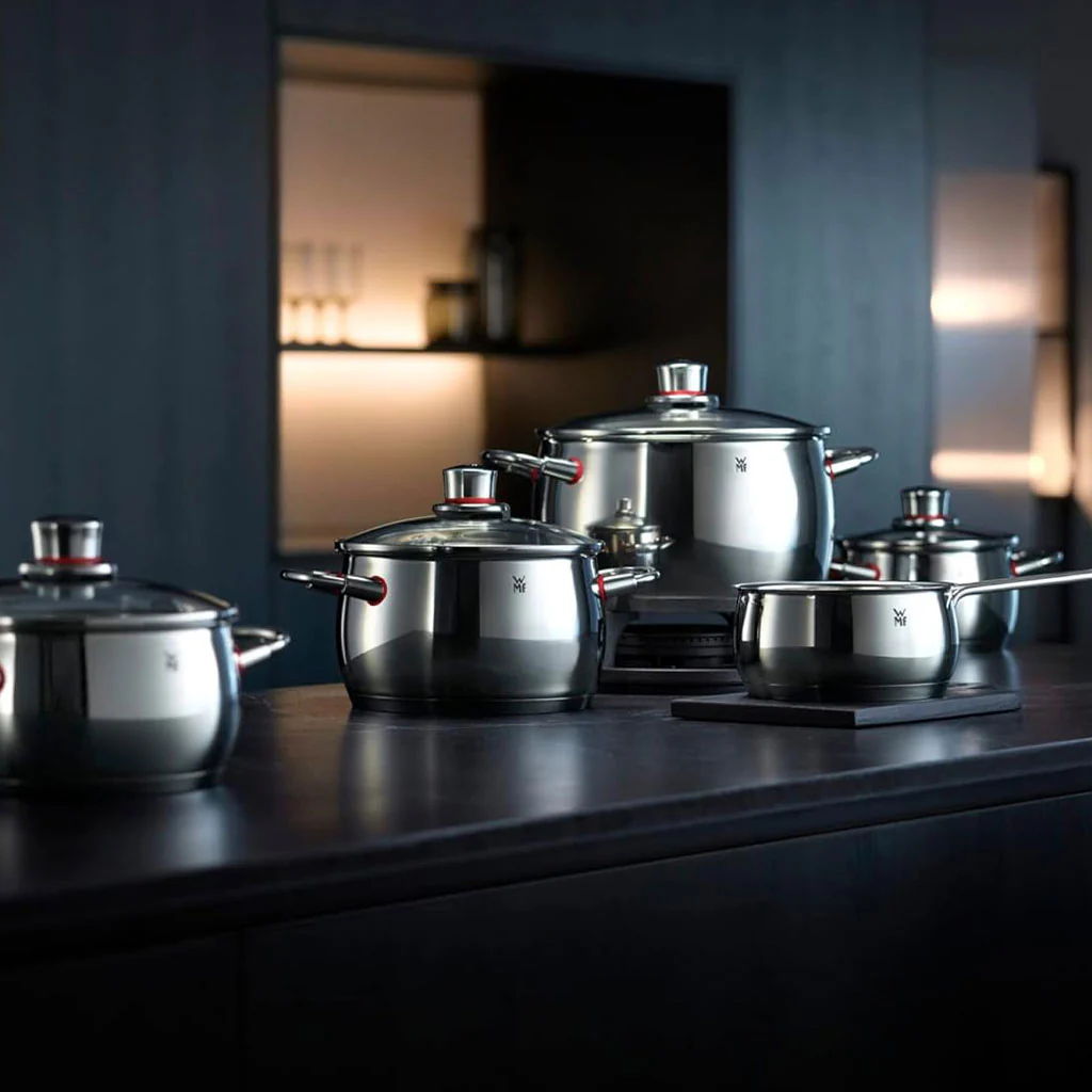 La Batería de cocina Quality One de WMF es una de las mejores baterías de WMF. Se trata de un conjunto de 5 piezas de acero inoxidable 10/18 Cromargan® de alta gama y perfectos acabados, ideal para tu cocina.