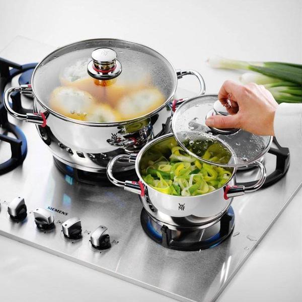 - Además, las tapas de cristal transparente y acero inoxidable 18/10 Cromargan® son tan elegantes como las piezas y permiten controlar la cocción en todo momento sin tener que levantarlas, conservando el vapor y el calor de los guisos, para cocinar de forma más eficiente.