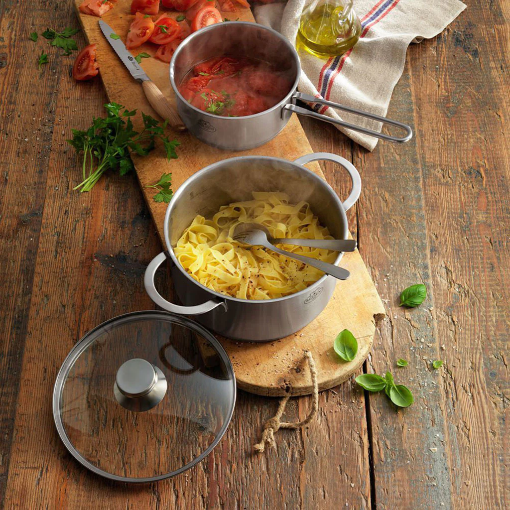 Las tapas de cristal se ajustan perfectamente a los cuerpos y te permiten cocinar a fuego lento con poca agua. Al ser transparentes, podrás ver el interior, manteniendo la temperatura y vapor de la cocción y aprovechando mejor el calor. De esta forma se gana tiempo en las cocciones y los resultados son más tiernos y sabrosos.