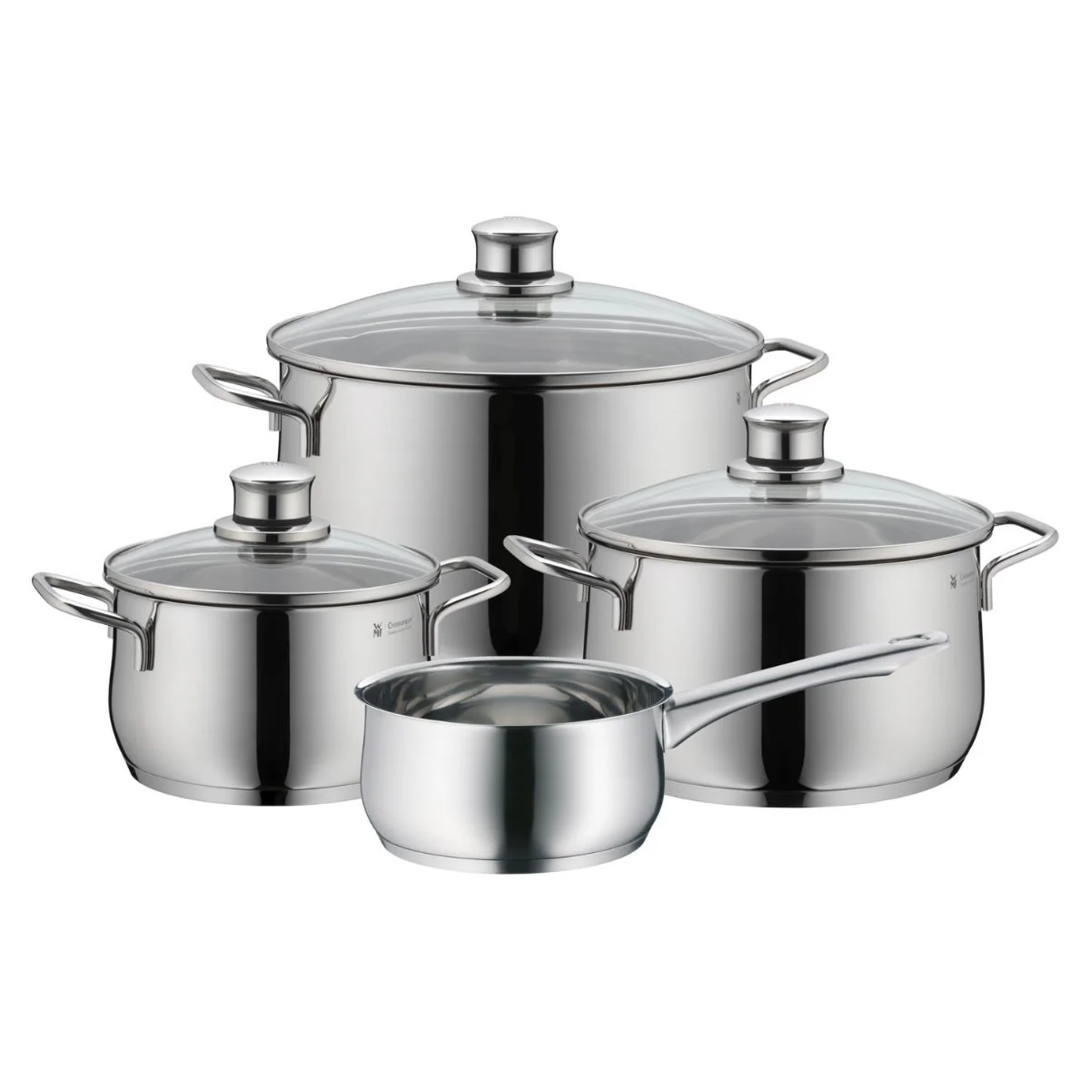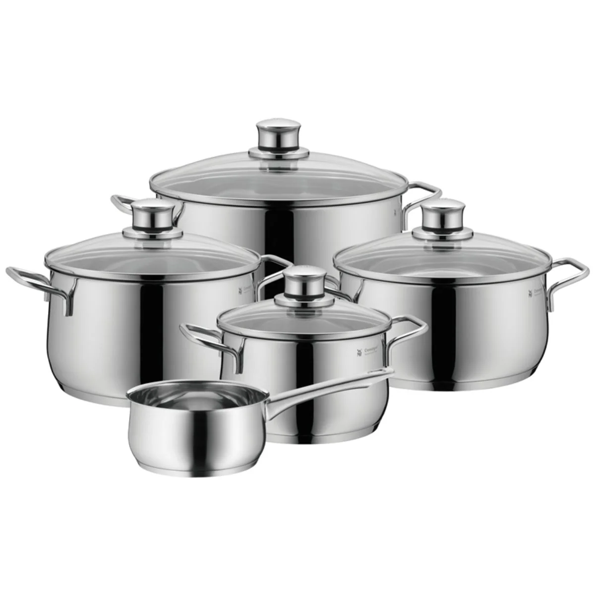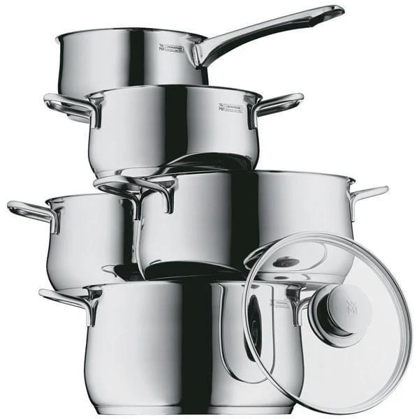 La batería de cocina Diadem Plus de 5 piezas WMF es una batería perfecta para equipar tu cocina. Se trata de una batería fabricada en acero inoxidable 10/18 Cromargan®, resistente al desgaste, sin sabor, fácil de limpiar, apto para lavavajillas y absolutamente higiénico.
