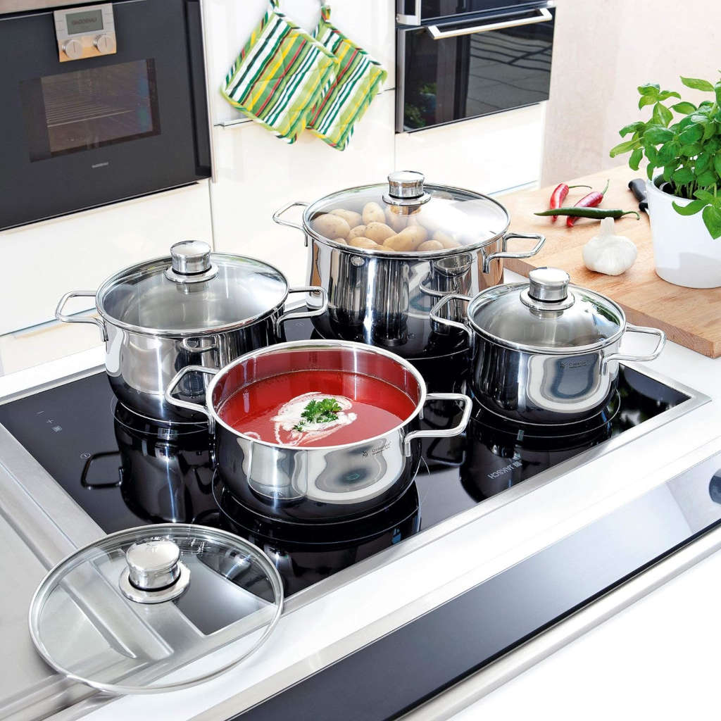 La batería de 4 piezas incluye 3 ollas altas y una cacerola, para que puedas cocinar todo tipo de recetas: