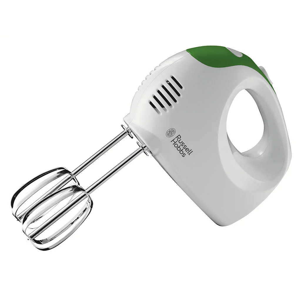 ¡Batir los ingredientes de tus pasteles y masas nunca había sido tan sencillo! La Batidora Amasadora Explore de Russell Hobbs te lo pone fácil: solo tienes que pulsar un botón. Con su acabado en blanco y detalles en verde, le añade un toque moderno a tu cocina. ¡Es tan bonita que te encantará tenerla siempre a la vista!