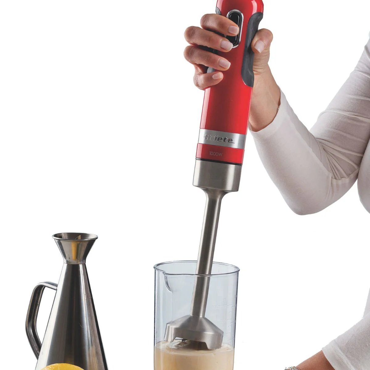 Si quieres optimizar espacio en tu cocina, esta batidora de varillas 3 en 1 Moderna Ariete es una estupenda elección. Ten a mano todo lo que necesitas de forma cómoda sin ocupar más espacio del necesario. Que hay que triturar la comida para un bebé, utilízala. Que quieres preparar la masa para un bizcocho, utilízala. Que necesitas triturar almendras para una picada, también puedes hacerlo con ella.