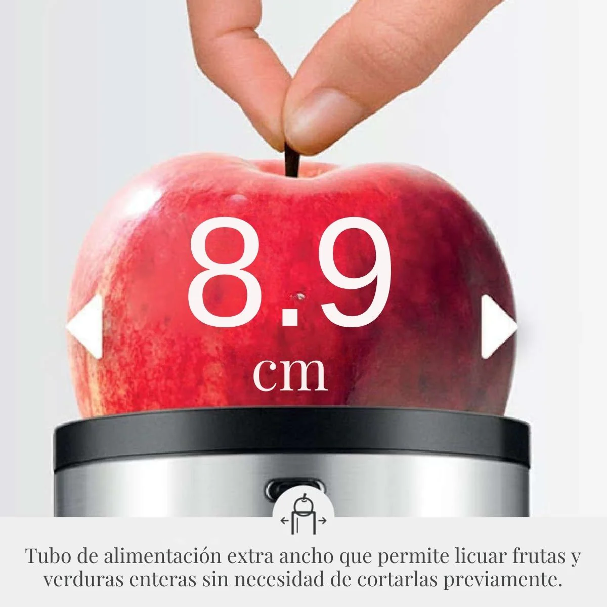 - Gracias a su apertura extraancha de 88 mm podrás licuar frutas y verduras enteras sin necesidad de trocearlas previamente.