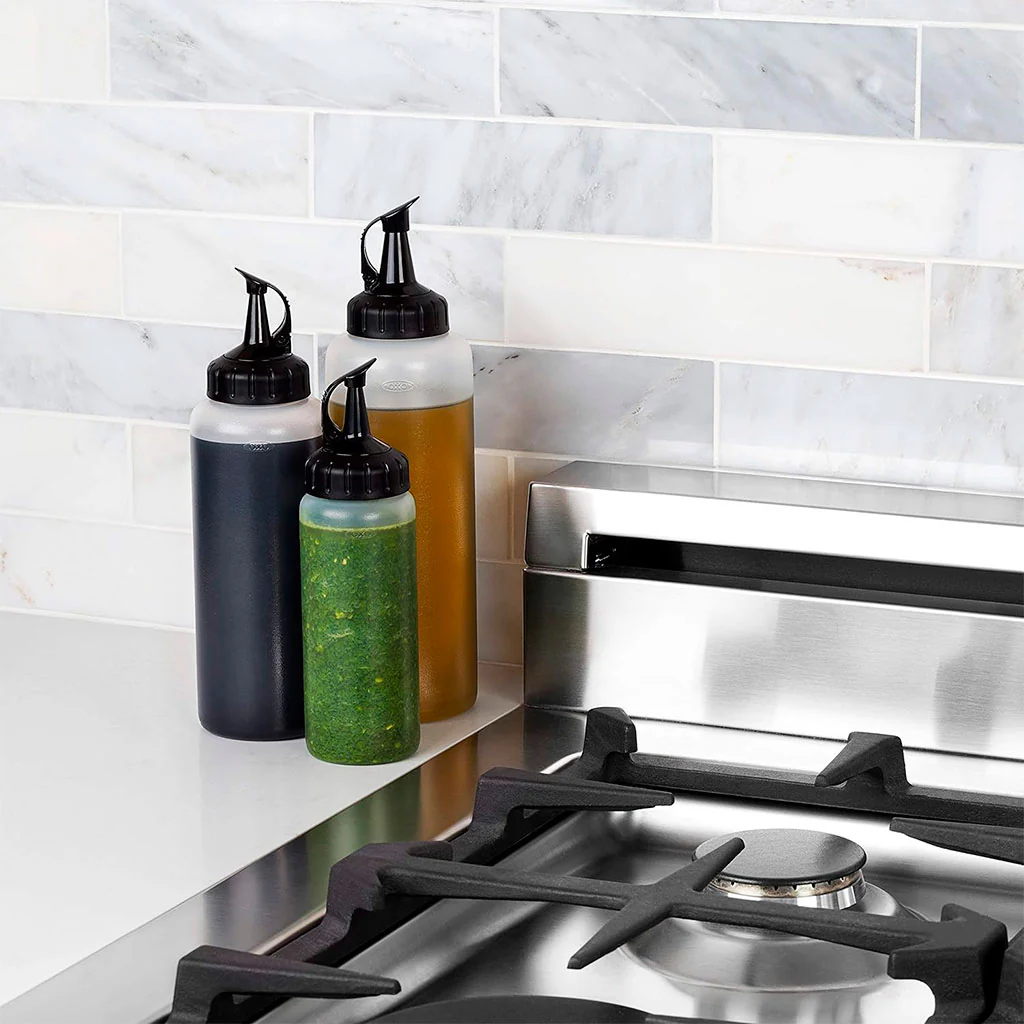 ¡Con el Biberón con medidor-dosificador OXO podrás preparar y servir aderezos, aceites, vinagres, siropes y otros condimentos de manera práctica y precisa! Este dosificador es perfecto para tus ensaladas, postres o cualquier receta que requiera un control exacto de ingredientes líquidos.
