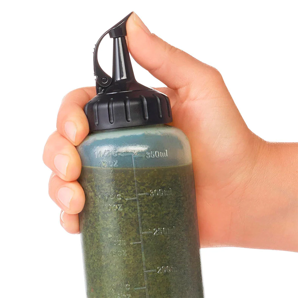 Fabricado con plástico polietileno flexible y duradero, es ideal para un uso continuo y seguro, ya que es libre de BPA. Viene en dos tamaños: pequeño de 180 ml y mediano de 350 ml, que se adaptaran a tus necesidades. Este biberon contiene una boca de vertido delgada la cuál permite un flujo controlado y asegura una dosificación perfecta en cada uso, así como en el dispensador se encuentran inscritas las marcas de medición en mililitros, tazas (cups) y onzas (oz), para que puedas preparar tus recetas con la máxima exactitud.