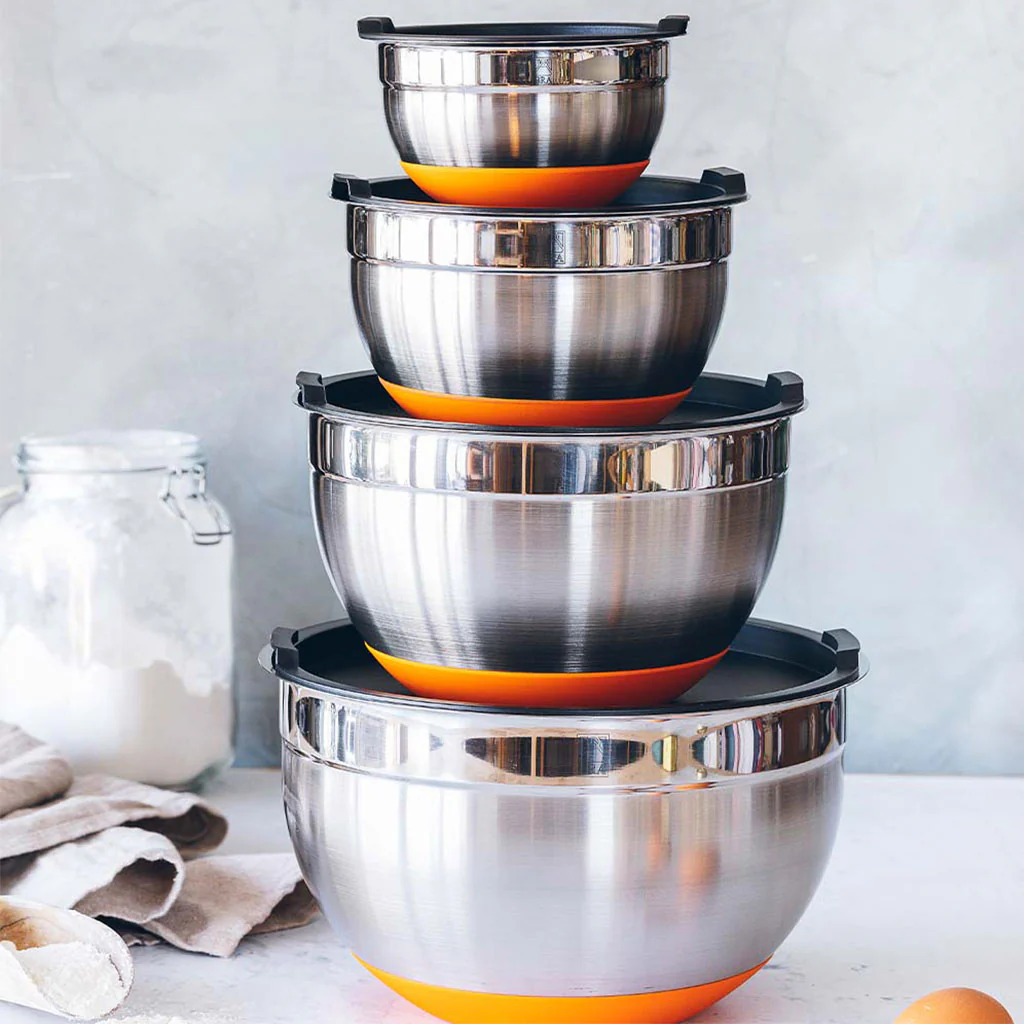 Su cuerpo de acero inoxidable no absorbe olores ni sabores. Perfectos para batir, mezclar y preparar masas, son ideales para llevar a la mesa las ensaladas, el arroz de acompañamiento, unos aperitivos o las palomitas recién hechas. Y si sobra algo, ¡la tapa se ocupará de mantener el contenido en perfecto estado!