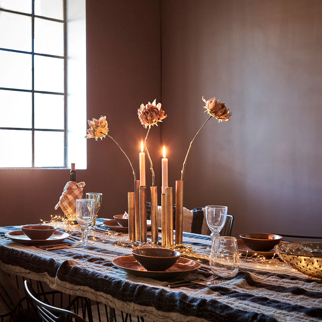 4. El color terracota aporta calidez a la mesa.