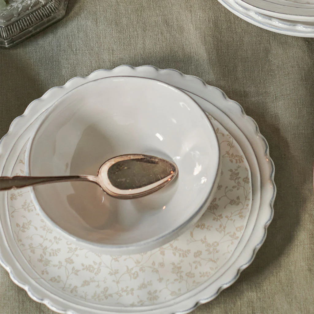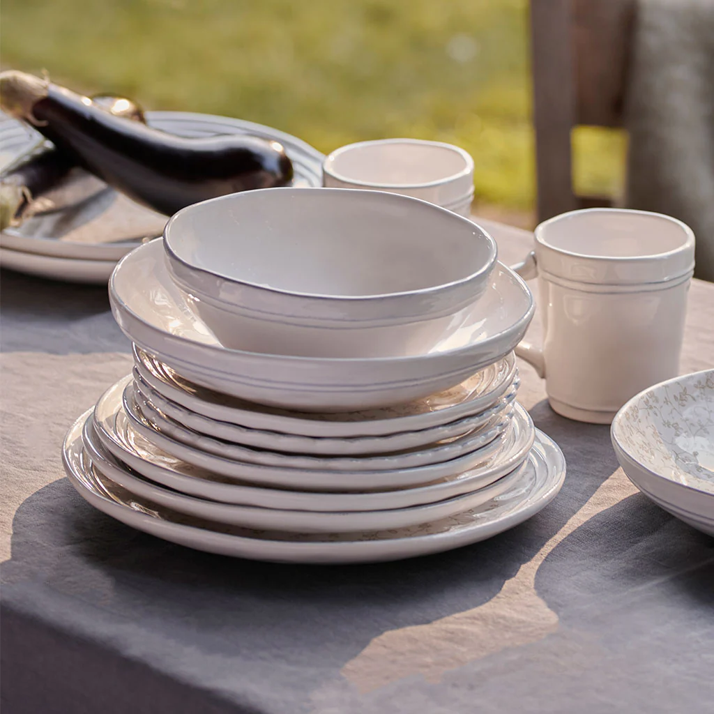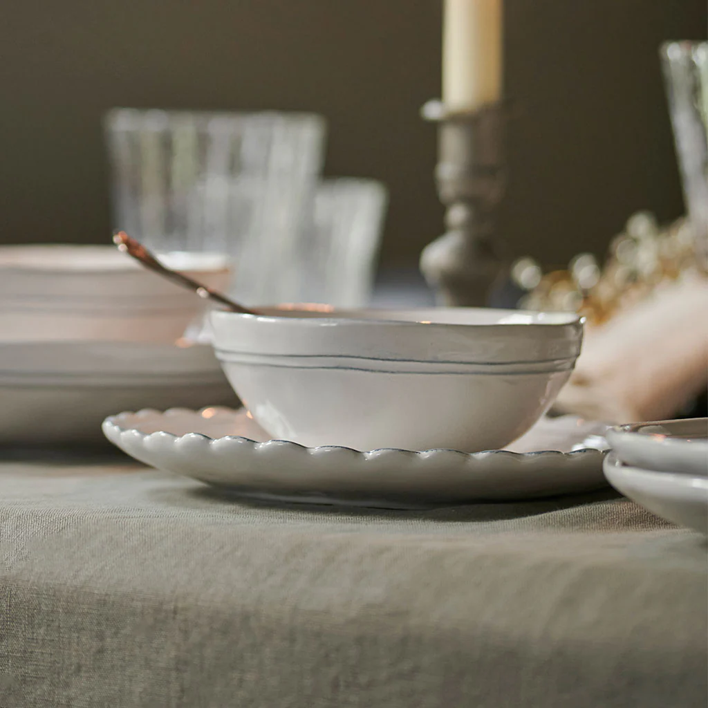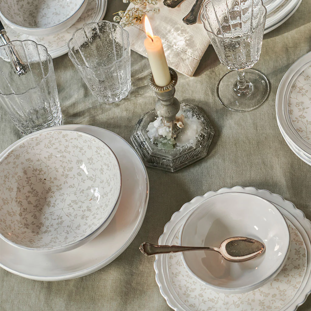 El bol cerámico Artisan Collection de Laura Ashely se presenta en dos formatos y en los dos diseños de la colección, totalmente blanco con líneas grises y blanco con sutiles flores estampadas en su interior: