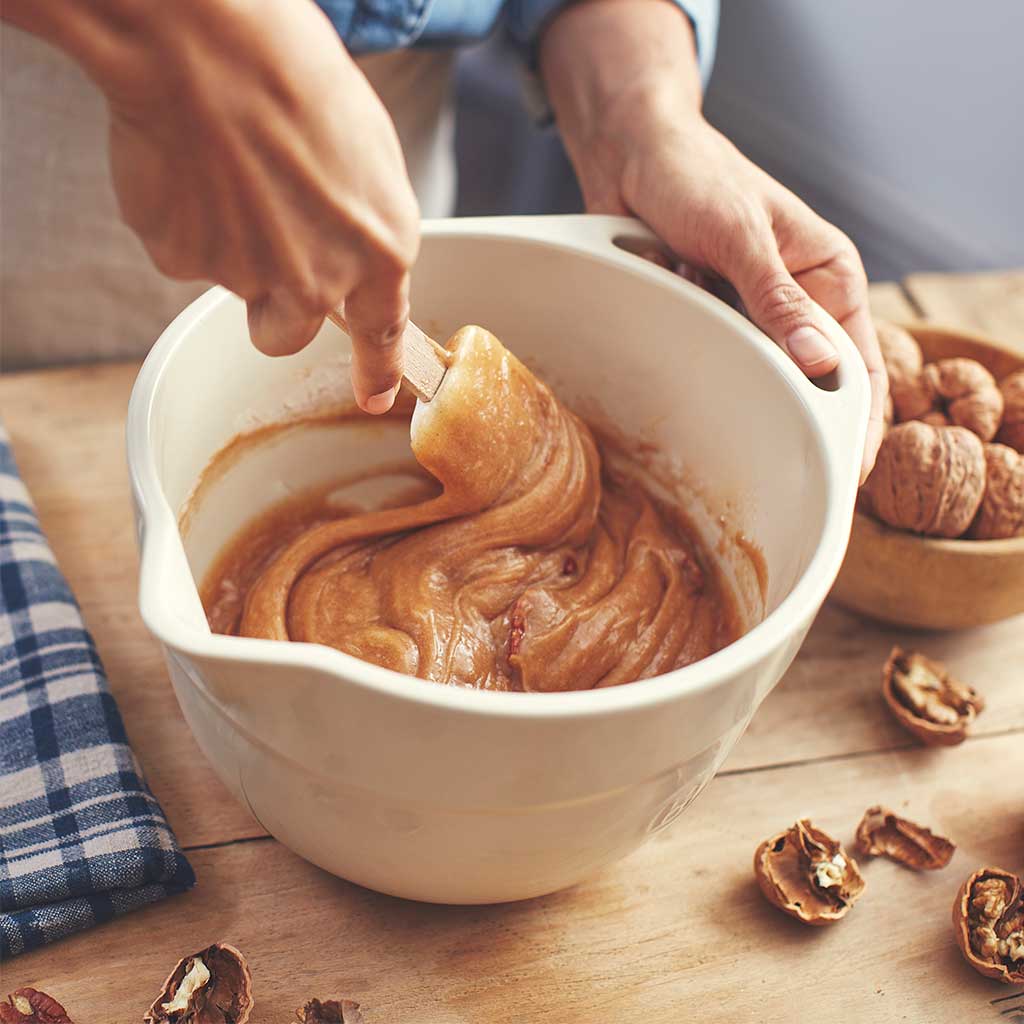 • Por su forma de cuenco es perfecto para batir tus cremas y masas ligeras, como la de magdalenas o bizcochos. Y gracias a su pico vertedor, podrás verter la preparación en los moldes fácilmente y sin derramar nada.