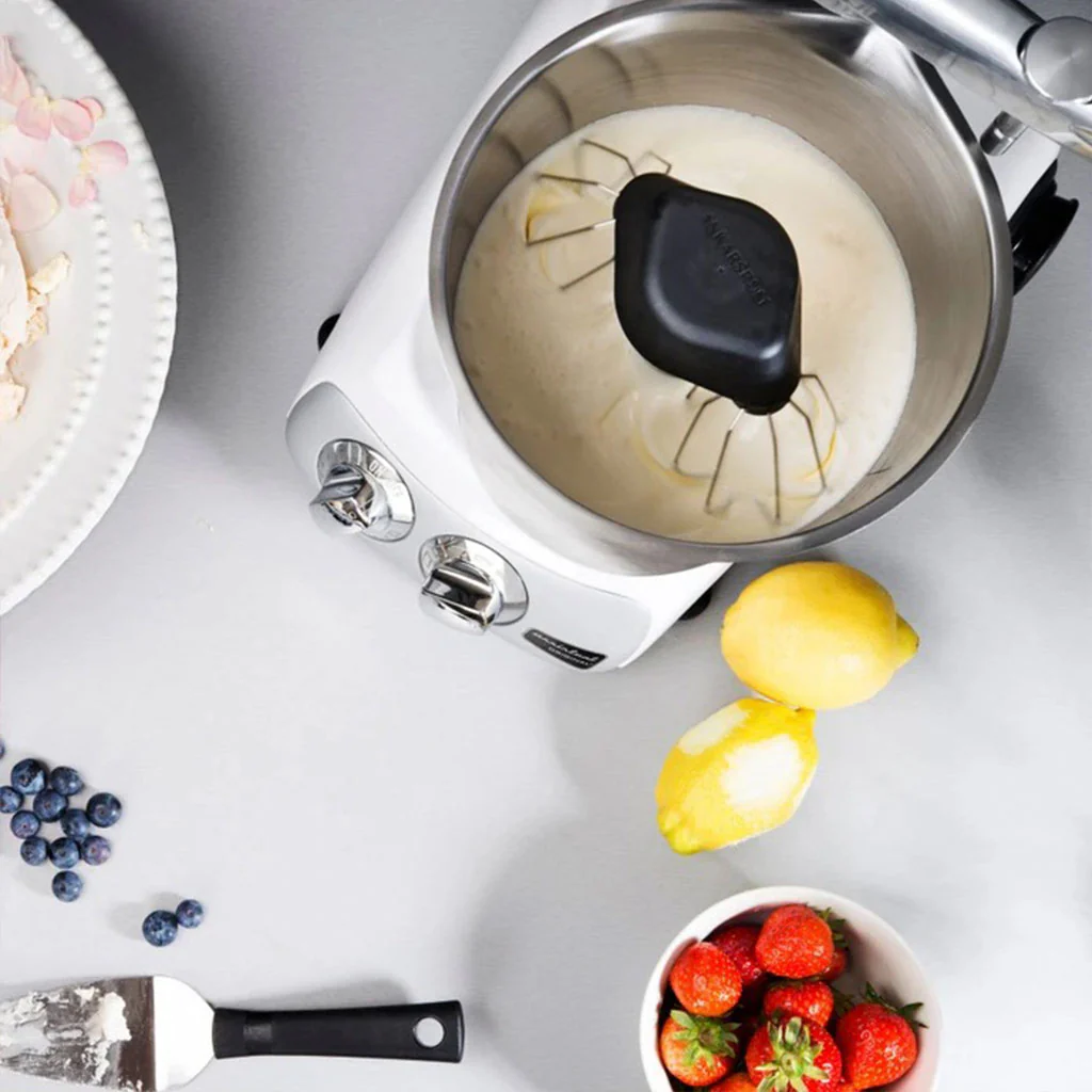Cuenta con una capacidad de 3,5 litros, por lo que es un bol ideal para las preparaciones que requieran menor volumen o menos cantidad de ingredientes. Se adapta a la perfección a tu Ankarsrum y su diseño, con pico vertedor y anillo de silicona en la base, hacen que sea tan cómodo de usar en la amasadora como sobre la superficie de trabajo.