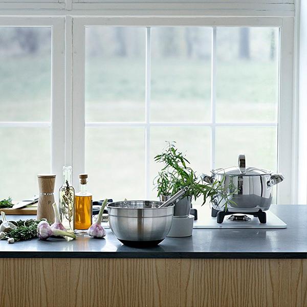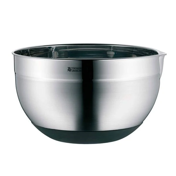 Este bol con base de silicona de WMF, fabricado en cuerpo de acero inoxidable, es ideales para mezclar, batir o preparar masas y servirlas, y lo harás con toda comodidad porque no tendrás ni que cogerlo: su base de silicona evita que se mueva mientras mezclas y le aporta total estabilidad.