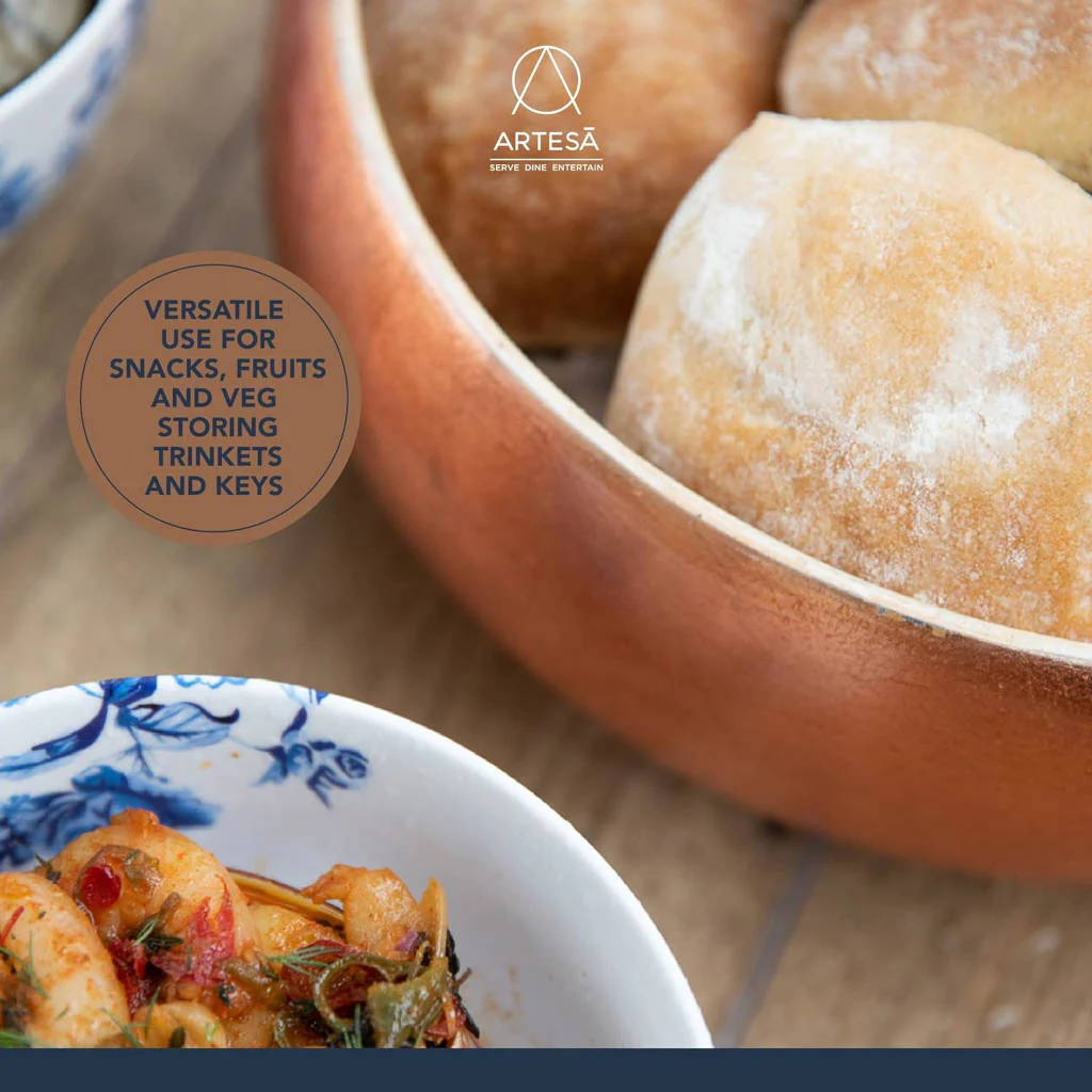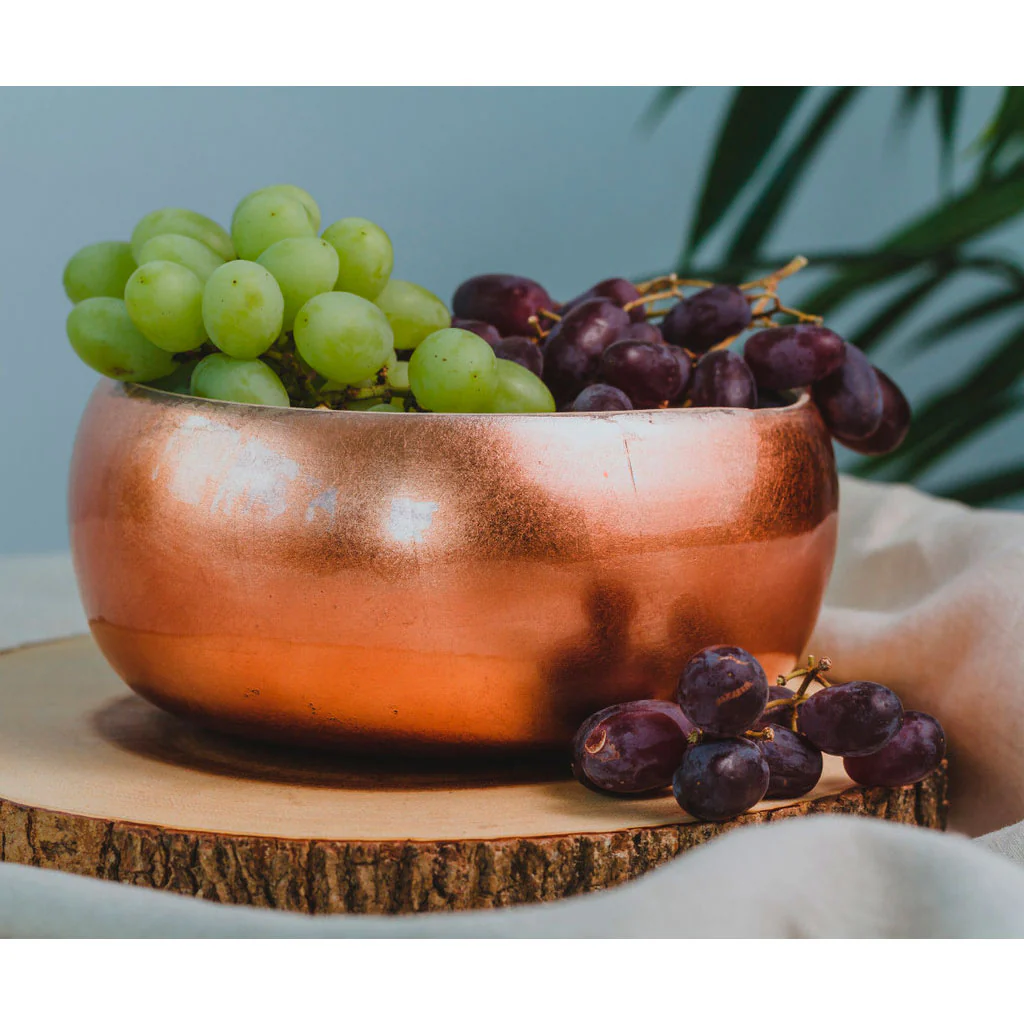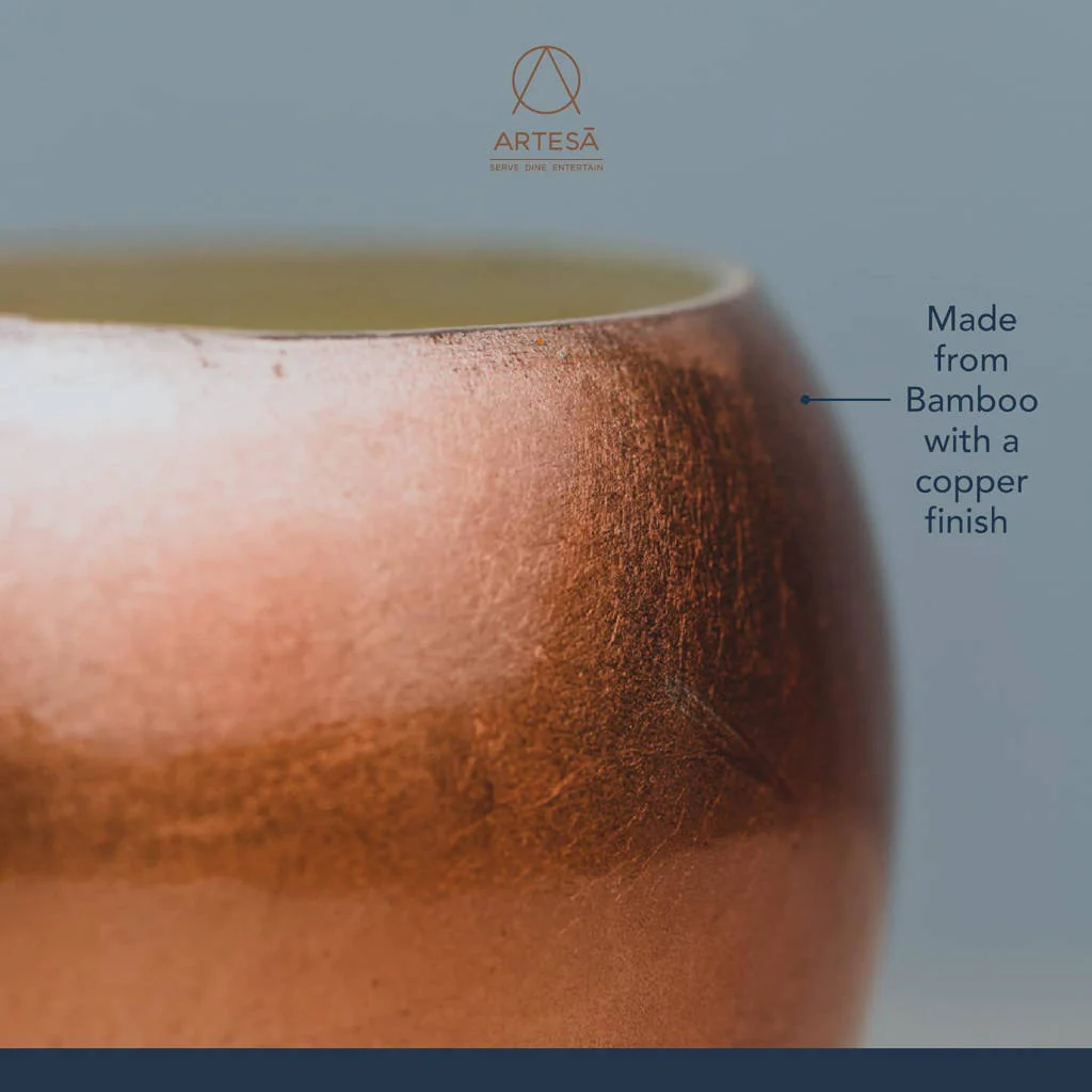 El bambú, como material natural, es una elección amigable y resistente para servir alimentos. Su resistencia a manchas, a la humedad, a los microbios y su incapacidad para absorber o afectar los sabores hacen que sea una opción práctica y segura para tus comidas. El esmaltado exterior en cobre no solo está en tendencia, sino que también agrega una cálida estética a tu mesa y entorno culinario.