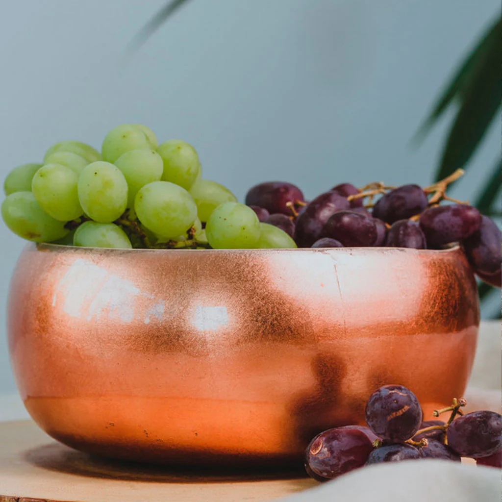 Recubierto con un lacado exterior en cobre, añade una dosis de elegancia a tu mesa y un toque de calidez a la cocina. Ligero y funcional, es un elemento imprescindible para la presentación de tus platos o como elemento decorativo en tu espacio culinario.